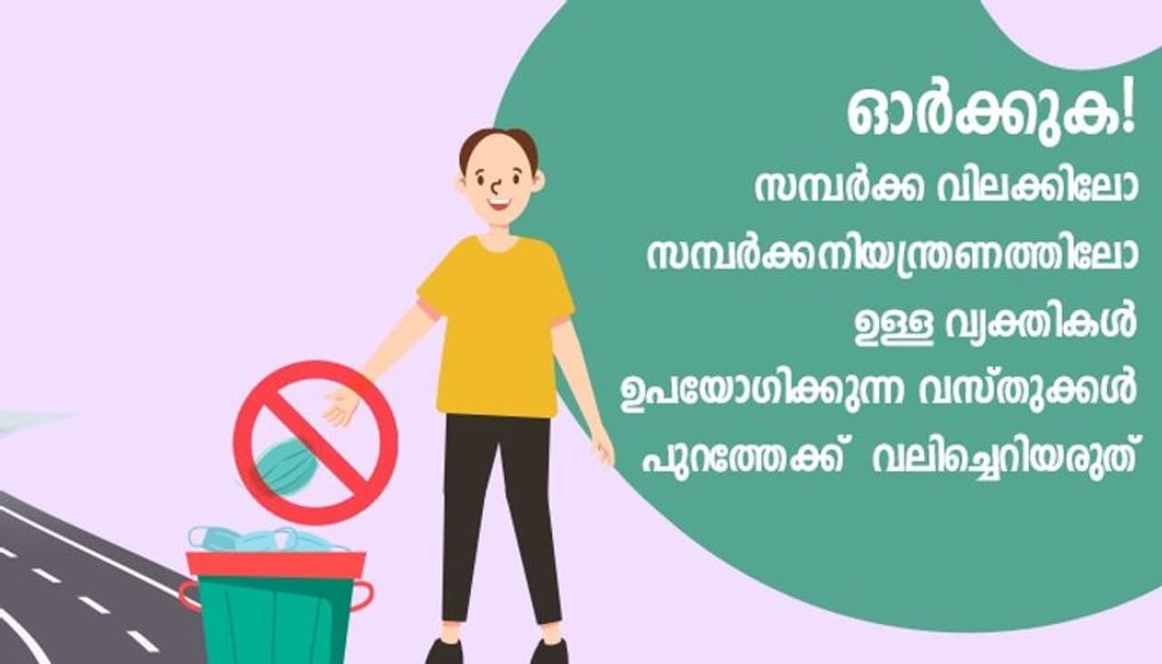 - സമ്പര്ക്ക വിലക്കിലോ/ സമ്പര്ക്കനിയന്ത്രണത്തിലോ ഉള്ള വ്യക്തിയുടെ ഭക്ഷണ അവശിഷ്ടങ്ങള് വളര്ത്തു മൃഗങ്ങൾക്കും പക്ഷികൾക്കും നൽകരുത്