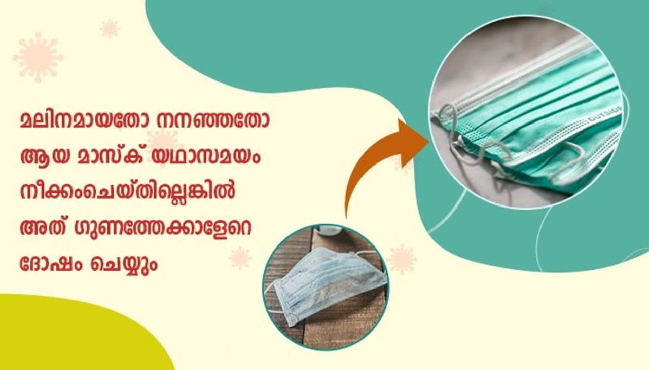 - ധരിച്ചു കഴിഞ്ഞ മാസ്ക് മൂക്കും വായയും മൂടുന്ന വിധത്തിലായിരിക്കണം.