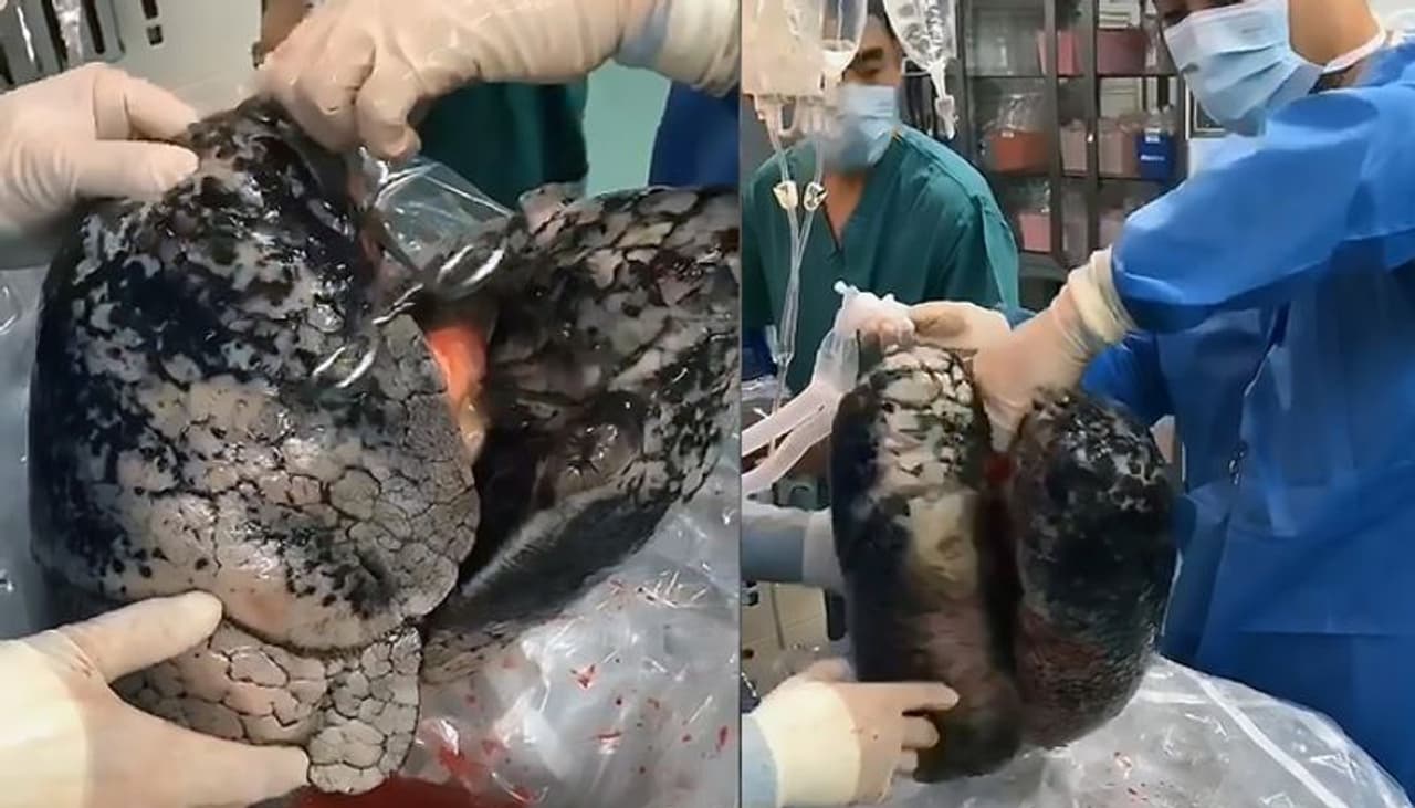 പള്മോനറി എംഫിസീമയെ തുടര്ന്നാണ് ഇയാളെ ആശുപത്രിയില് പ്രവേശിപ്പിക്കുന്നത്. ശ്വാസകോശത്തിലെ അണുബാധനിമിത്തം സ്വസ്തമായി ശ്വസിക്കാന് സാധിക്കാത്ത അവസ്ഥയാണ് ഇത്. അതില് വിങ്ങി വീര്ത്ത അവസ്ഥയിലായിരുന്നു ഇയാളുടെ ശ്വാസകോശമുണ്ടായിരുന്നത്. മാറ്റിവക്കല് ചികിത്സയ്ക്ക് ഈ ശ്വാസകോശം ഉപയോഗിക്കില്ലെന്ന് ഡോക്ടര്മാര് വിശദമാക്കി. ഒരിക്കല് പോലും പുകവലിക്കാത്ത ആളുടെ ശ്വാസകോശത്തിനൊപ്പം ഇയാളുടെ ശ്വാസകോശം വച്ചുള്ള ചിത്രവും ആശുപത്രി പുറത്ത് വിട്ടു.