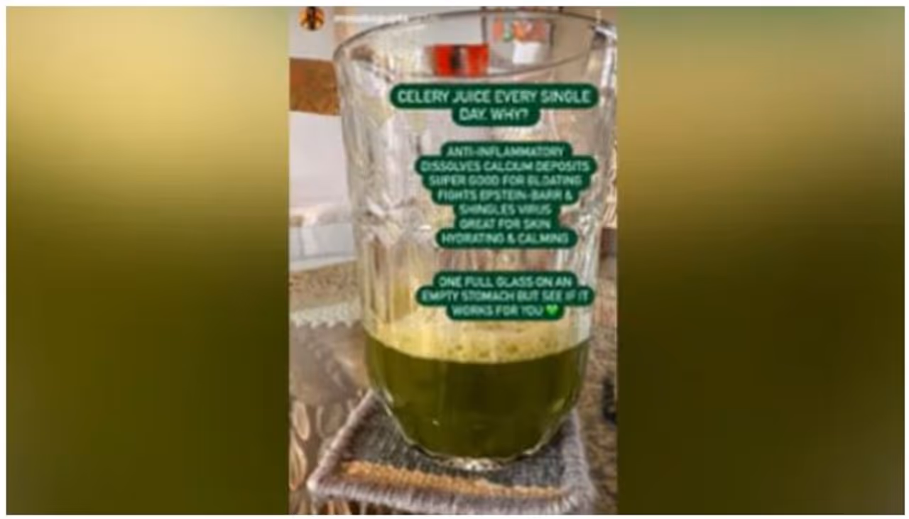 ദിവസവും താൻ വെറും വയറ്റിൽ കുടിക്കുന്ന ഒന്നാണ് സെലറി ജ്യൂസ്(celery juice). ധാരാളം ആരോഗ്യഗുണങ്ങൾ സെലറിയ്ക്കുണ്ടെന്ന് ഇൻസ്റ്റഗ്രാം പോസ്റ്റിൽ പങ്കുവച്ച കുറിപ്പിൽ പറയുന്നു. ഇലകൾക്ക് വേണ്ടി വളർത്തുന്ന പച്ചക്കറിയാണ് സെലറി. വേവിക്കാതെ പച്ചയായി സാലഡിൽ ചേർക്കുന്ന ഇലകൾ വേവിച്ചും ഭക്ഷണത്തിൽ ഉൾപ്പെടുത്താറുണ്ട്. സൂപ്പുകളിലും ജ്യൂസുകളിലും സുഗന്ധവും രുചിയും നൽകാനും ഇത് ഉപയോഗിക്കാറുണ്ട്.