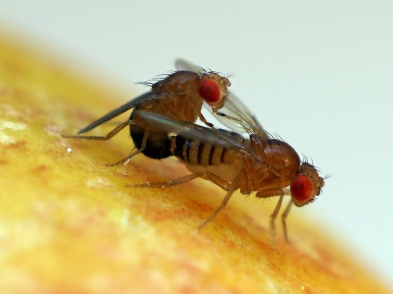 സർവകലാശാലയിലെ ലബോറട്ടറിയിൽ നടത്തിയ പരീക്ഷണത്തിൽ, ഒരു പെട്ടിയിൽ പഴങ്ങളിൽ വിഹരിക്കുന്ന ആൺ ഈച്ചകളെ അഞ്ചു വിർജിൻ ഈച്ചകളോടൊപ്പം ഇട്ടുവെച്ചു. രണ്ടാമതൊരു പെട്ടിയിൽ ആൺ ഈച്ചകളെ അതിനകം ഇണചേർന്നു കഴിഞ്ഞിരുന്ന ഈച്ചകളോടൊപ്പവും അടച്ചു. ആദ്യത്തെ പെട്ടിയിൽ അടച്ചിരുന്ന ആൺ പെൺ ഈച്ചകൾ തമ്മിൽ ബന്ധപ്പെട്ടപ്പോൾ, രണ്ടാമത്തെ പെട്ടിയിലെ ആൺ ഈച്ചകൾ രതിക്കുവേണ്ടി പെൺ ഈച്ചകളെ സമീപിച്ചപ്പോൾ, നേരത്തെ ബന്ധപ്പെട്ടിരുന്നു എന്നതുകൊണ്ട് അവർ തിരസ്കരിക്കപ്പെടുന്നു. ഈ ആൺ ഈച്ചകൾക്ക് പിന്നീട 15 ശതമാനം സാന്ദ്രതയുള്ള ആൽക്കഹോൾ കഴിക്കാൻ കൊടുത്തപ്പോൾ, പെൺ ഈച്ചകളുമായി ലൈംഗിക ബന്ധത്തിൽ ഏർപ്പെട്ട ആൺ ഈച്ചകൾ അത് കഴിക്കാൻ താത്പര്യം കാണിച്ചില്ല. പെൺ ഈച്ചകളാൽ തിരസ്കരിക്കപ്പെട്ട ആൺ ഈച്ചകളാവട്ടെ ആൽക്കഹോൾ കഴിച്ച് മത്തു പിടിക്കുകയും ചെയ്തു. ഈ രണ്ടു പെരുമാറ്റങ്ങൾക്കും പിന്നിൽ പ്രവർത്തിച്ചത് 'ന്യൂറോ പെപ്റ്റൈഡ് F 'ആണ് എന്നാണ് ഗവേഷകർ പറയുന്നത്.