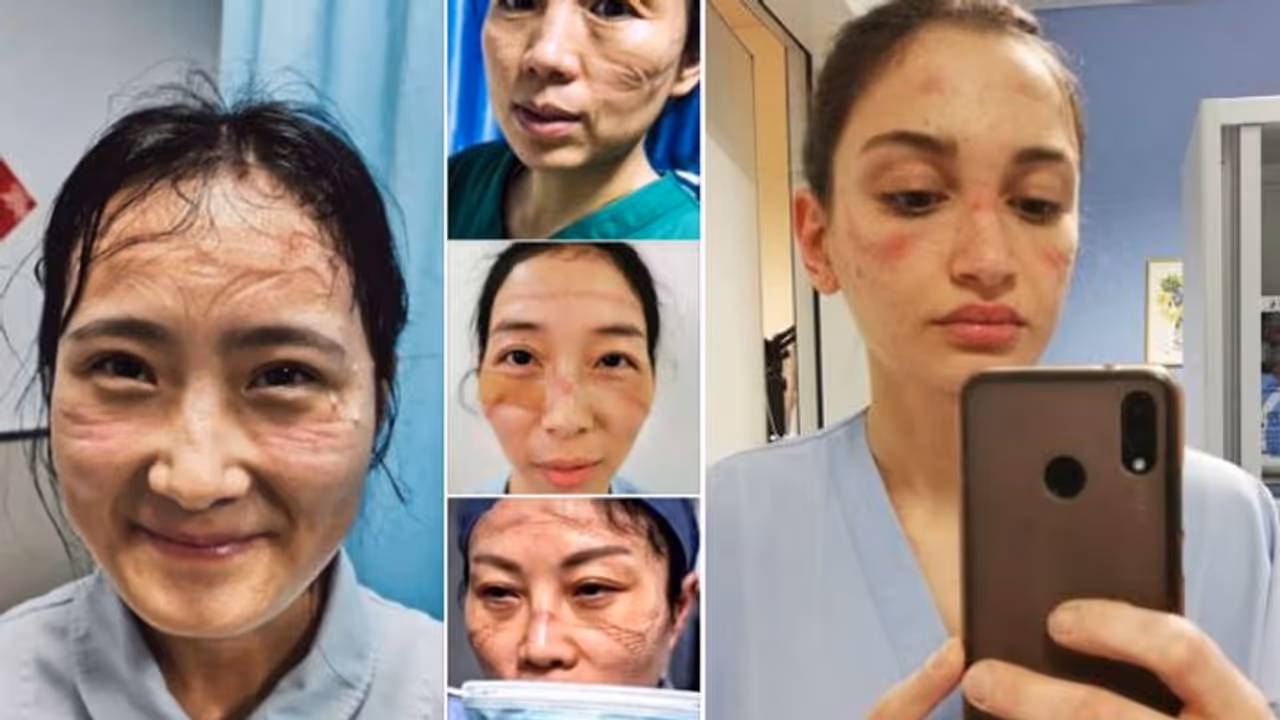 പ്രത്യേകം തയ്യാറാക്കിയ കോട്ടുകള്ക്കകത്ത് കയറിയാല് വിയര്ത്ത് കുളിക്കും. എങ്കില്പ്പോലും ഒരു തുള്ളി വെള്ളം കുടിക്കാന് മണിക്കൂറുകള് കാത്തിരിക്കേണ്ടിവരും. ഈ കോട്ടുകള്ക്കാണെങ്കില് സാമാന്യത്തിലധികം ഭാരമുണ്ട്. അതിനാല്ത്തന്നെ അവ തുടര്ച്ചയായി ദീര്ഘനേരം ധരിക്കുന്നത് കൊണ്ട് മുഖം ഉള്പ്പെടെ പലയിടങ്ങളിലും മുറിവും ചതവും സംഭവിക്കുന്നുണ്ട്. ഇത്തരത്തില് പരിക്കുകള് പറ്റിയ മുഖങ്ങള് വെളിപ്പെടുത്തുന്ന ചിത്രങ്ങളാണ് കഴിഞ്ഞ ദിവസം ചൈനയില് നിന്നും ഇറ്റലിയില് നിന്നുമായി ആരോഗ്യപ്രവര്ത്തകര് പങ്കുവച്ചത്.