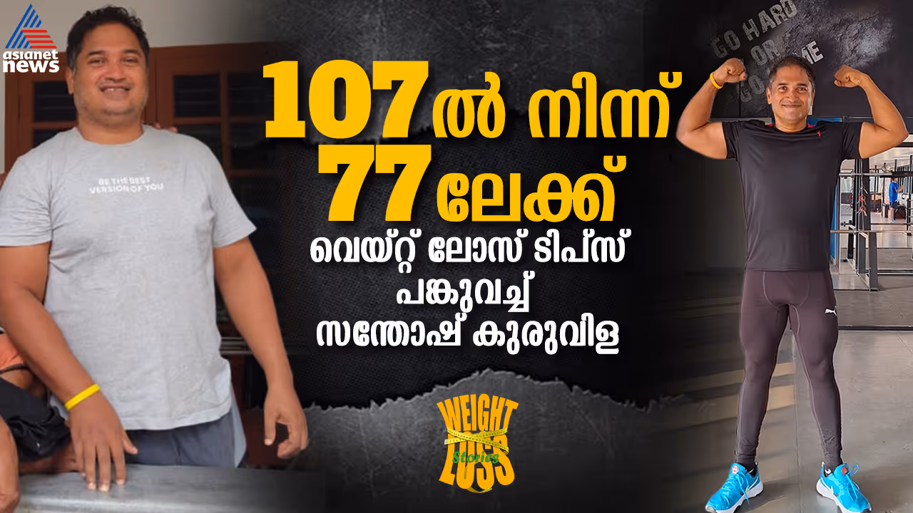 തുടക്കത്തിൽ 107 കിലോ ഭാരം ഉണ്ടായിരുന്നു. ഭാരം ഉണ്ടായിരുന്ന സമയത്ത് ബിപി കൂടുകയും സ്ലീപ്പ് അപ്നിയ ഈ രണ്ട് പ്രശ്നങ്ങളും അലട്ടിയിരുന്നു. വണ്ണം ഉണ്ടായിരുന്നപ്പോൾ നന്നായി ഉറങ്ങാൻ പറ്റില്ലായിരുന്നു… - സന്തോഷ് കുരുവിള പറഞ്ഞു.