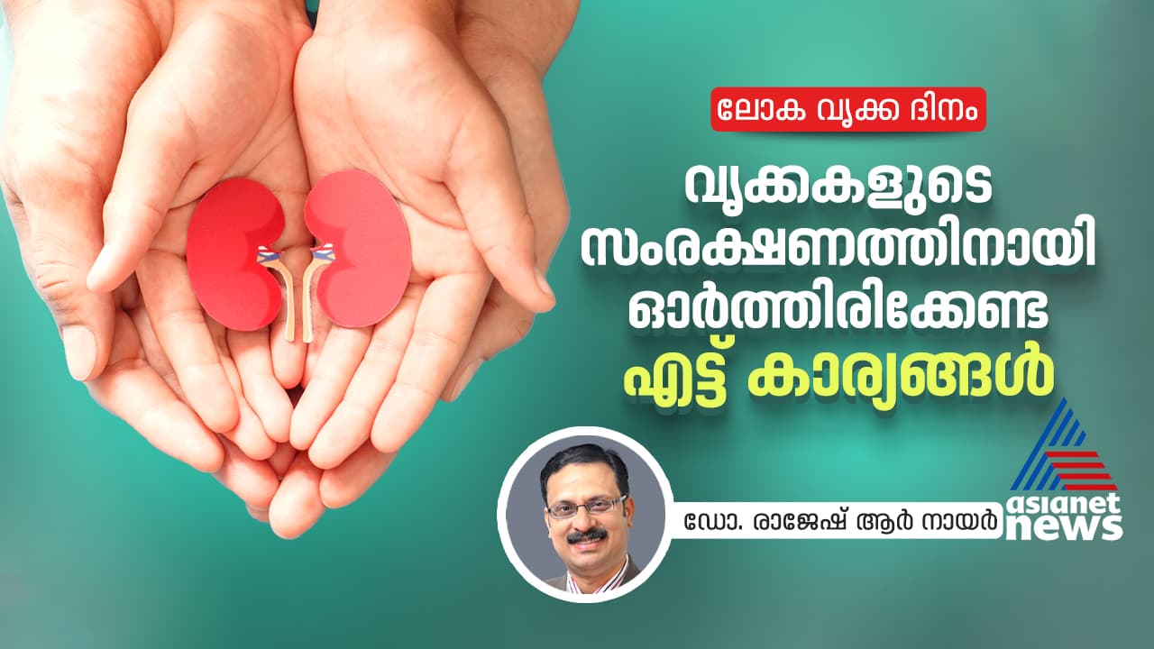 വൃക്കകളുടെ സംരക്ഷണത്തിനായി ശ്രദ്ധിക്കേണ്ട കാര്യങ്ങളെ കുറിച്ച് കൊച്ചി അമൃത ആശുപത്രിയിലെ നെഫ്രോളജി വിഭാഗം മേധാവിയും ക്ലിനിക്കൽ പ്രൊഫസറുമായ ഡോ. രാജേഷ് ആർ നായർ തയ്യാറാക്കിയ ലേഖനം.