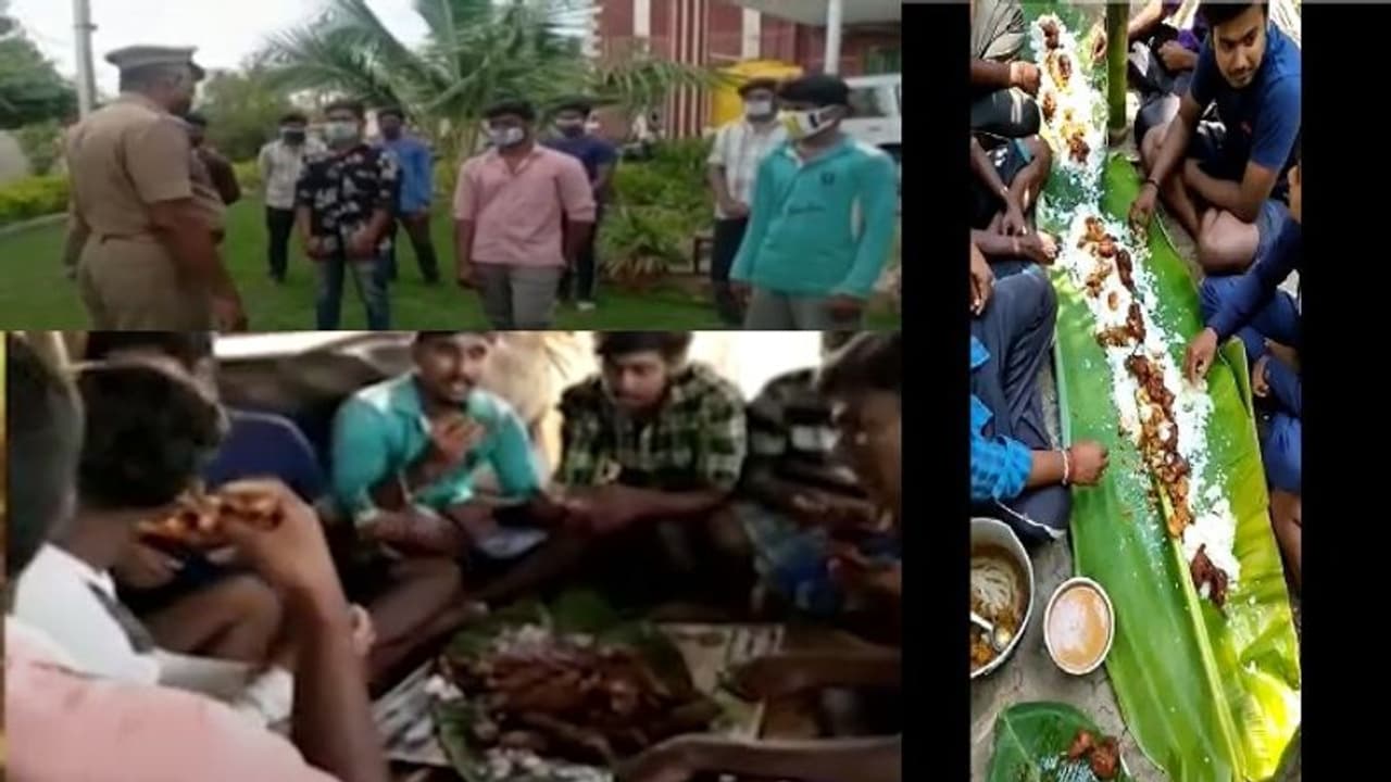 ചെന്നൈ: കൊറണ വൈറസ് എന്ന മഹാമാരിയ്ക്കെതിരെ അഹോരാത്രം കഷ്ടപ്പെടുകയാണ് പൊലീസും ആരോഗ്യപ്രവർത്തകരും സർക്കാരുകളും. എന്നാൽ നിർദ്ദേശങ്ങൾ കാറ്റിൽ പറത്തി ലോക്ക്ഡൗൺ ലംഘിക്കുന്നവരുടെ വാർത്തകളാണ് ഓരോ ദിവസവും പുറത്തുവന്നുകൊണ്ടിരിക്കുന്നത്. അത്തരത്തിൽ ലോക്ക്ഡൗണ് ലംഘിച്ച് 'സദ്യ' ഒരുക്കിയ പത്ത് യുവാക്കളെ പൊലീസ് അറസ്റ്റ് ചെയ്തെന്ന വാർത്തയാണ് തമിഴ്നാട്ടിൽ നിന്ന് വരുന്നത്.