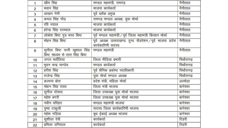 അച്ചടക്ക ലംഘനം എന്നതിനപ്പുറം എന്താണ് വ്യക്തമായ കാരണമെന്താണെന്ന് ട്വീറ്റിൽ പറയുന്നില്ല . ഉത്തരാഖണ്ഡിലെ ബിജെപി പ്രവർത്തകരുടെയും നേതൃത്വത്തിന്റെയും പ്രവർത്തികൾ നേരത്തെയും വിവാദമായിട്ടുണ്ട്. കുൻവാർ പ്രണവ് സിംഗ് എന്ന എംഎൽഎ തോക്കുമായി നൃത്തം ചെയ്യുന്ന ദൃശ്യങ്ങൾ പുറത്ത് വരികയും എംഎൽഎയെ പാർട്ടി 6 വർഷത്തേക്ക് സസ്പെൻഡ് ചെയ്യുകയും ചെയ്തത് കഴിഞ്ഞ ജൂലൈയിലാണ്.