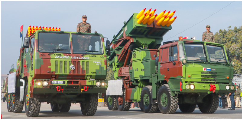 ഇന്ത്യയുടെ പീരങ്കി ശക്തിയുടെ ഒരു പ്രധാന ഘടകമാണ് പിനാക മൾട്ടി-ബാരൽ റോക്കറ്റ് ലോഞ്ചര്. ഡിഫൻസ് റിസർച്ച് ആൻഡ് ഡെവലപ്മെന്റ് ഓർഗനൈസേഷൻ (ഡിആർഡിഒ) ആണ് ഇത് രൂപകൽപ്പന ചെയ്തത്. കൂടാതെ ടാറ്റ അഡ്വാൻസ്ഡ് സിസ്റ്റംസ്, ലാർസൻ & ട്യൂബ്രോ തുടങ്ങിയ ഇന്ത്യൻ പ്രതിരോധ കമ്പനികളാണ് പിനാക നിർമ്മിച്ചത്. പൊതു-സ്വകാര്യ പങ്കാളിത്തത്തിലാണ് ഇത് നിർമ്മിച്ചിരിക്കുന്നത്. വെറും 44 സെക്കന്റിൽ 72 മിസൈലുകൾ തൊടുക്കാൻ പിനാകയ്ക്ക് കഴിയും. പിനാക്ക റോക്കറ്റുകളിൽ ജിപിഎസ് സംവിധാനവും സജ്ജീകരിച്ചിട്ടുണ്ട്. ഒരു ഗൈഡഡ് സിസ്റ്റവും ഇതിൽ സ്ഥാപിച്ചിട്ടുണ്ട്. പിനാക്ക റോക്കറ്റുകൾക്ക് മാക് 4.7 (മണിക്കൂറിൽ 5,800 കിലോമീറ്റർ) വേഗത കൈവരിക്കാൻ കഴിയുമെന്നാണ് വിദഗ്ദ്ധർ പറയുന്നത്. ഇത് ആക്രമണത്തിൽ നിന്ന് പിനാകയെ തടസ്സപ്പെടുത്തുന്നത് അത്യന്തം വെല്ലുവിളി നിറഞ്ഞതാക്കി മാറ്റുന്നു.