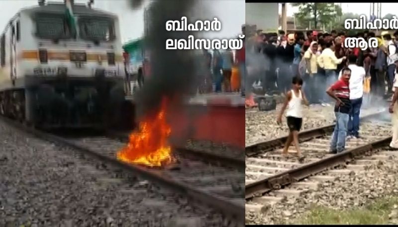 അതേസമയം വടക്കേ ഇന്ത്യയിൽ പ്രതിഷേധം ശക്തമായി തുടരുകയാണ്. ബിഹാറിൽ ഇന്നും ട്രെയിനുകൾ കത്തിച്ചു. സമസ്തിപൂരിലും ലക്കിസരായിയിലും ട്രെയിനുകൾക്ക് തീയിട്ടു. രണ്ട് സ്റ്റേഷനുകളിലും നിർത്തിയിട്ട ട്രെയിനുകളാണ് പ്രതിഷേധക്കാർ കത്തിച്ചത്. ലഖിസരായിയിൽ ജമ്മുതാവി ഗുവാഹത്തി എക്സ്പ്രസിനും വിക്രംശില എക്സ്പ്രസിനുമാണ് അക്രമികൾ തീയിട്ടത്. ബിഹാറിലെ ആര റെയിൽവേ സ്റ്റേഷനിലും അക്രമികൾ അഴിഞ്ഞാടി. സ്റ്റേഷൻ അടിച്ച് തകർത്തു. ബിഹാറിലെ സരണിൽ ബിജെപി എംഎൽഎയുടെ വീടിന് നേരെ ആക്രമണം ഉണ്ടായി. ബക്സർ, ലഖിസരായി, ലാക്മിനിയ എന്നിവിടങ്ങളിൽ റെയിൽവേ ട്രാക്കിനും അക്രമികൾ തീയിട്ടു. ഉപമുഖ്യമന്ത്രിയുടെ വീടിന് നേരെയും ആക്രമണം ഉണ്ടായി. ഉപമുഖ്യമന്ത്രിയും ബിജെപി നേതാവുമായ രേണു ദേവിയുടെ വീടിന് നേരെയാണ് ആക്രമണം ഉണ്ടായത്. ബിഹാറിൽ അക്രമം നടത്തുന്നത് ആർജെഡി ഗുണ്ടകളാണെന്ന് ബിജെപി ആരോപിച്ചു. രേണഉ ദേവി പാറ്റ്നയിലാണെന്നും വീടിന് വലിയ നാശനഷ്ടങ്ങൾ ഉണ്ടായതായും മകൻ പ്രതികരിച്ചു.