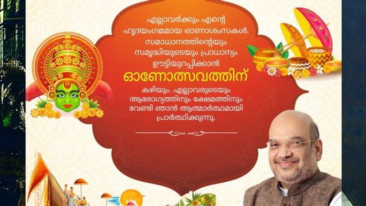 എല്ലാവർക്കും എന്റെ ഹൃദയംഗമമായ ഓണാശംസകൾ. സമാധാനത്തിന്റെയും സമൃദ്ധിയുടെയും പ്രാധാന്യം ഊട്ടിയുറപ്പിക്കാൻ ഓണോത്സവത്തിന് കഴിയും - അമിത് ഷാ ആശംസ നേർന്ന് പറഞ്ഞു.
