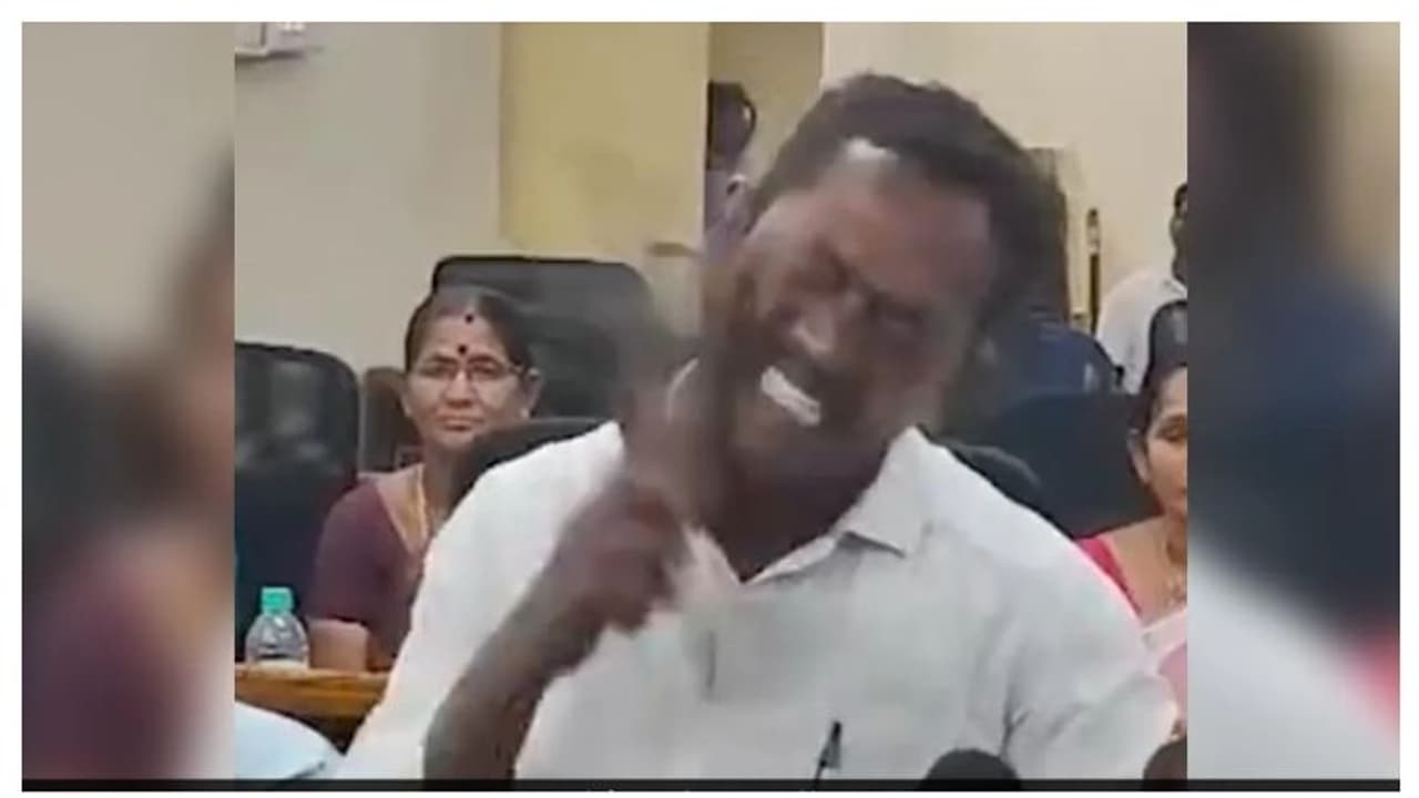 ഹൈദരാബാദ്: വോട്ടർമാർക്ക് നൽകിയ വാഗ്ദാനങ്ങൾ പാലിക്കാത്തതിനെ തുടർന്ന് കൗൺസിൽ യോഗത്തിൽ ചെരിപ്പുകൊണ്ട് സ്വയം മുഖത്തടിച്ച് ആന്ധ്രയിലെ കൗൺസിലർ. അനകപ്പള്ളി ജില്ലയിലെ കൗൺസിലറാണ് സ്വയം ചെരിപ്പുകൊണ്ട് അടിച്ച് ശിക്ഷിച്ചത്. നരസിപട്ടണം മുനിസിപ്പാലിറ്റി വാർഡ് 20 കൗൺസിലർ മുളപ്പർത്തി രാമരാജു കൗൺസിൽ യോഗത്തിൽ തന്റെ നിരാശ പ്രകടിപ്പിക്കുകയായിരുന്നു. സംഭവത്തിന്റെ വീഡിയോ വൈറലായി.