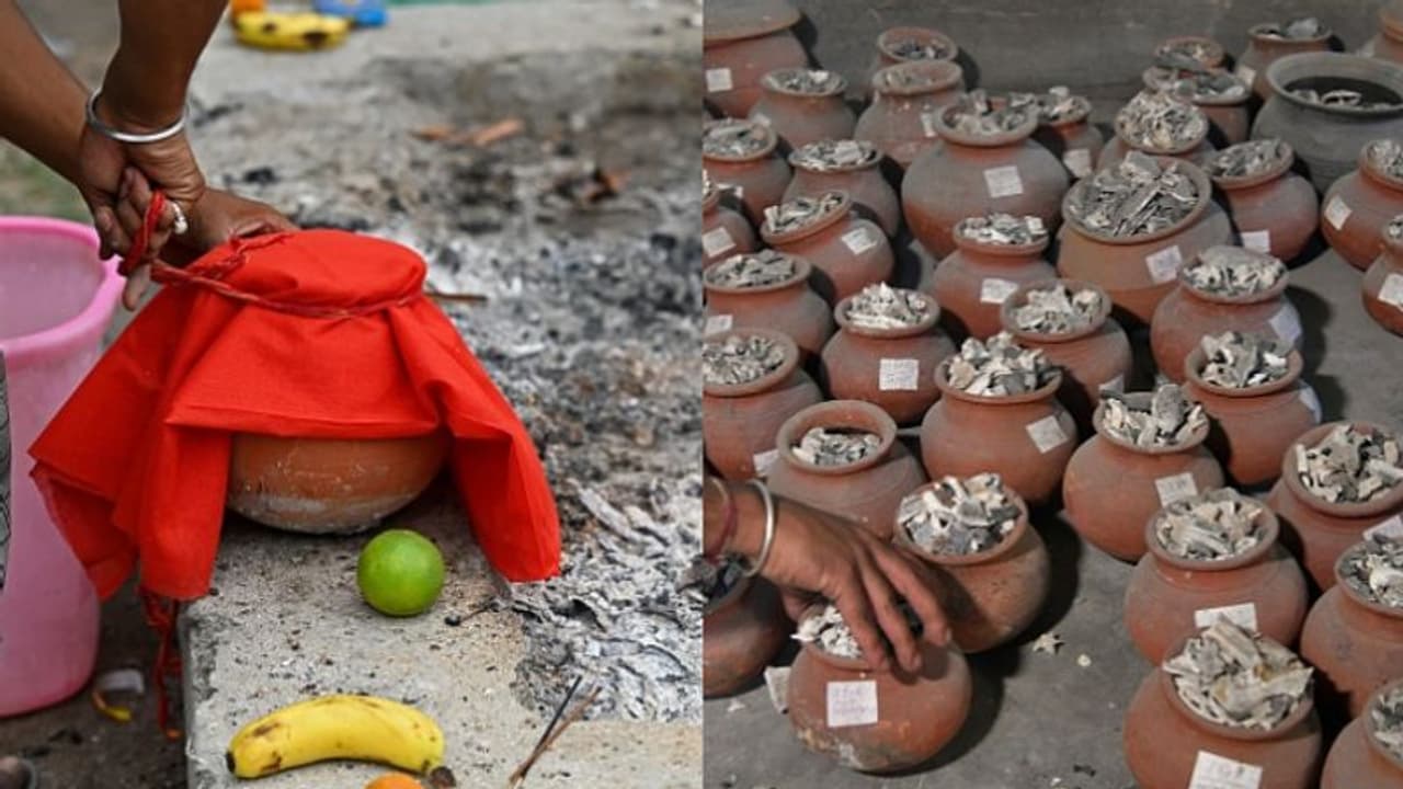 ബന്ധുക്കള് തേടിയെത്താതെ ആഗ്രയിലെ(Agra) ശ്മശാനങ്ങളിലെ ചിതാഭസ്മക്കുടങ്ങള് (unclaimed ashes of covid victims). കൊറോണ വൈറസ് (Covid 19) ബാധിച്ച് മരിച്ച 53 പേരുടെ ചിതാഭസ്മമാണ് ബന്ധുക്കളെ കാത്ത് സൂക്ഷിച്ച് വച്ചിരിക്കുന്നത്. കൊവിഡ് ബാധിച്ച് മരിച്ചവരെ ഒരുമിച്ച് സംസ്കരിക്കുന്ന ദൃശ്യങ്ങള് പുറത്ത് വന്നത് ഏതാനും മാസങ്ങള്ക്ക് മുന്പാണ്. കൊവിഡ് രൂക്ഷമായ സമയത്ത് രോഗബാധ ഭയന്ന് നിരവധിപ്പേരുടെ മൃതദേഹങ്ങള്ക്കൊപ്പം ബന്ധുക്കള് ആരും എത്തിയിരുന്നില്ലെന്നാണ് ആഗ്രയിലെ താജ്ഗഞ്ചിലെ ശ്മശാന (crematorium) സൂക്ഷിപ്പുകാരന് പറയുന്നത്.