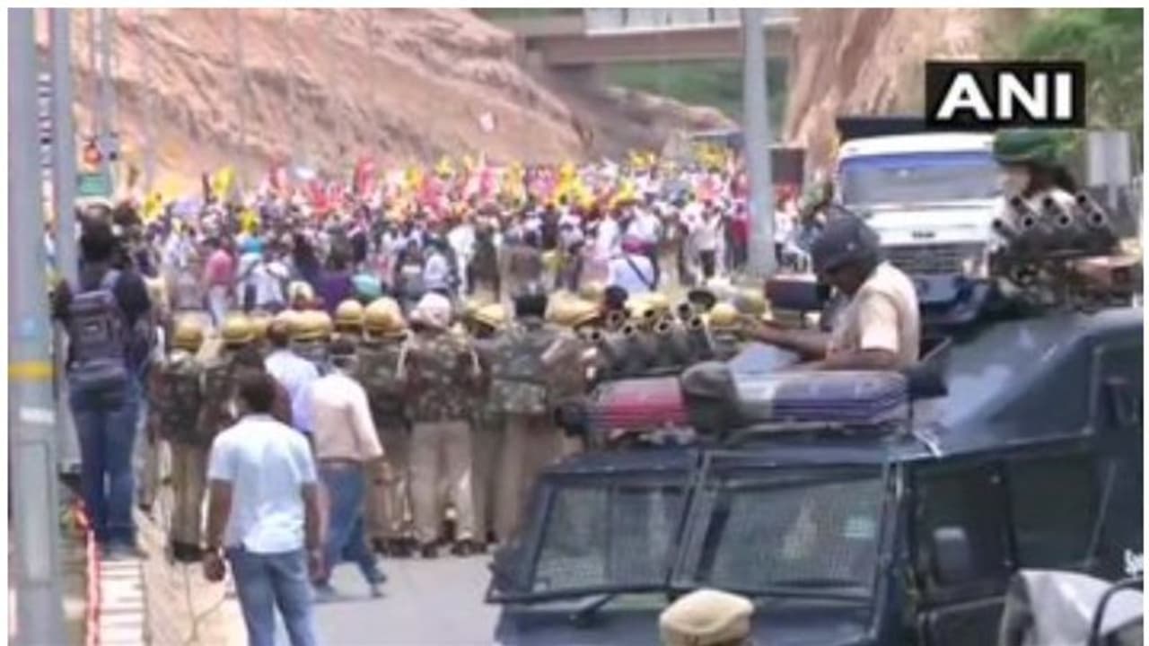 അതേസമയം, കർഷകരുടെ ഇന്നത്തെ പ്രതിഷേധത്തിനിടെ പാകിസ്ഥാനിൽ നിന്നുള്ള ഐ എസ് ഗ്രൂപ്പിൻ്റെ അട്ടിമറി സാധ്യതയുണ്ടെന്ന് രഹസ്യാന്വേഷണ റിപ്പോർട്ട് പുറത്തുവന്നിരുന്നു. ദില്ലി പൊലീസ്, സി ഐ എസ് എഫ് ഉൾപ്പെടെയുള്ളവർക്ക് ഇത് സംബന്ധിച്ച് ജാഗ്രത നിർദ്ദേശം നൽകിയെന്ന് വാർത്താ ഏജൻസി റിപ്പോർട്ട് ചെയ്തിരുന്നു.
