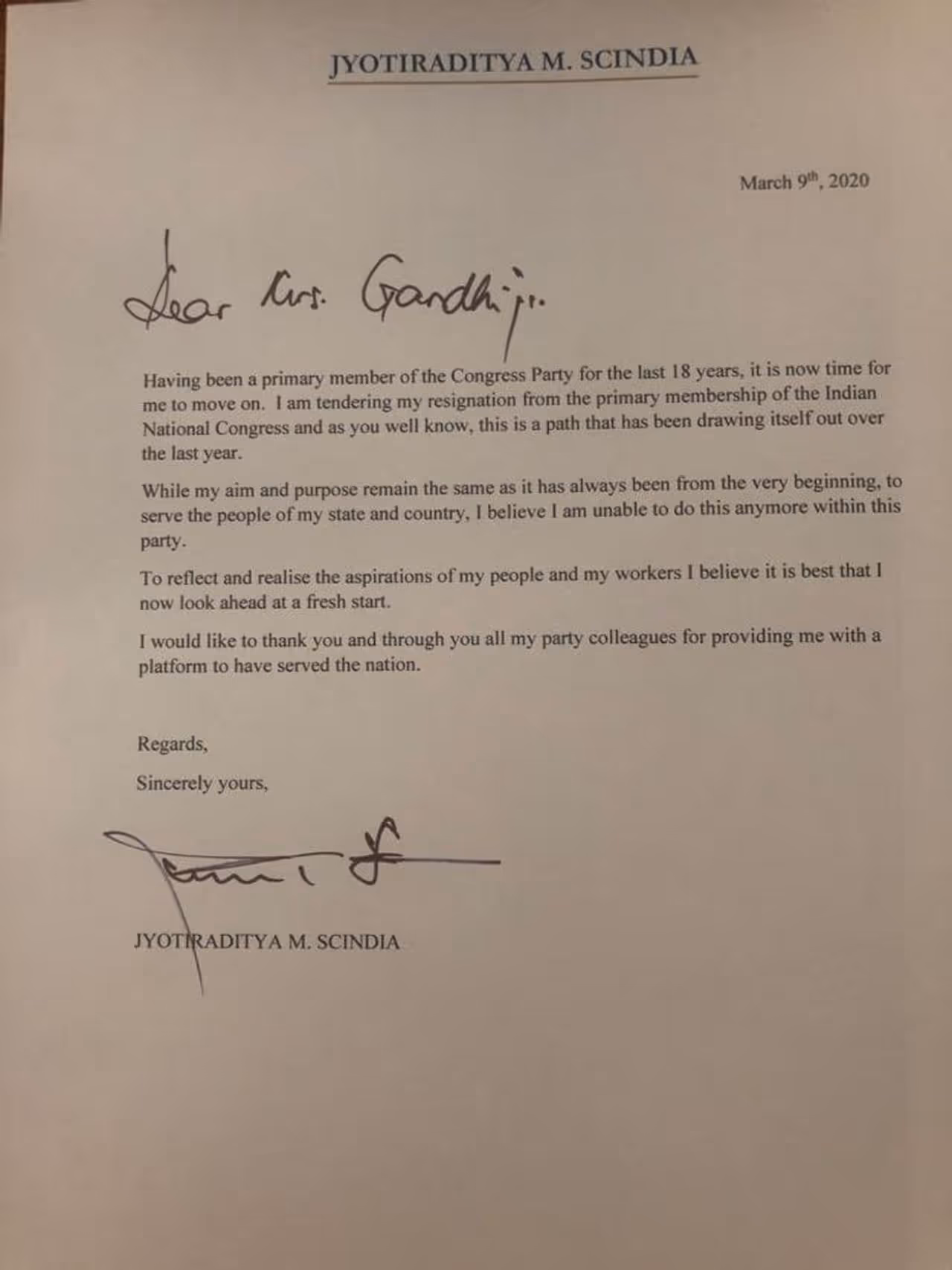 രാഹുല് ഗാന്ധിയുടെ നേതൃത്വത്തിലുള്ള യുവ നേതാക്കളുടെ നിരയില് ഉള്പ്പെട്ട ജ്യോതിരാദിത്യ സിന്ധ്യയുടെ രാജി മധ്യപ്രദേശില് വലിയ രാഷ്ട്രീയ പ്രതിസന്ധിയാണ് ഉണ്ടാക്കുക. സംസ്ഥാനത്ത് നിയമസഭാതെരഞ്ഞെടുപ്പില് കോണ്ഗ്രസിന്റെ വിജയത്തിനായി തന്ത്രങ്ങള് മെനയുന്നതിലും വിജയത്തിലേക്കെത്തിക്കുന്നതിലും നിര്ണായക സാന്നിധ്യമായിരുന്നു ജ്യോതിരാദിത്യ സിന്ധ്യ. ഒരു ഘട്ടത്തില് സിന്ധ്യ മധ്യപ്രദേശിനെ ഭരിക്കുമെന്ന രീതിയില് പോലും പ്രചാരണമുണ്ടായി. എന്നാല് മുഖ്യമന്ത്രിസ്ഥാനത്തേക്ക് പരിഗണിക്കപ്പെട്ടെങ്കിലും രാജസ്ഥാനില് അശോക് ഗെഹ്ലോട്ടിനായി സച്ചിന്പൈലറ്റിന് മാറി നില്ക്കേണ്ടി വന്നത് പോലെ അവസാന നിമിഷത്തില് മുതിര്ന്ന നേതാക്കളുടെ സമ്മര്ദ്ദത്തിന് വഴങ്ങി കമല്നാഥിന് മുഖ്യമന്ത്രി സ്ഥാനം നല്കുന്നതിനെ അനുകൂലിക്കേണ്ടി വരികയായിരുന്നു സിന്ധ്യയ്ക്കും. 15 മാസത്തെ സംസ്ഥാനത്തെ കോണ്ഗ്രസ് ഭരണത്തിനിടയിലും സിന്ധ്യയുടെ പലനീക്കങ്ങളെയും സംസ്ഥാനത്തെ കോണ്ഗ്രസിനെ നയിക്കുന്ന കമല്നാഥും ദ്വിഗ് വിജയ് സിംഗും പരാജയപ്പെടുത്തി.