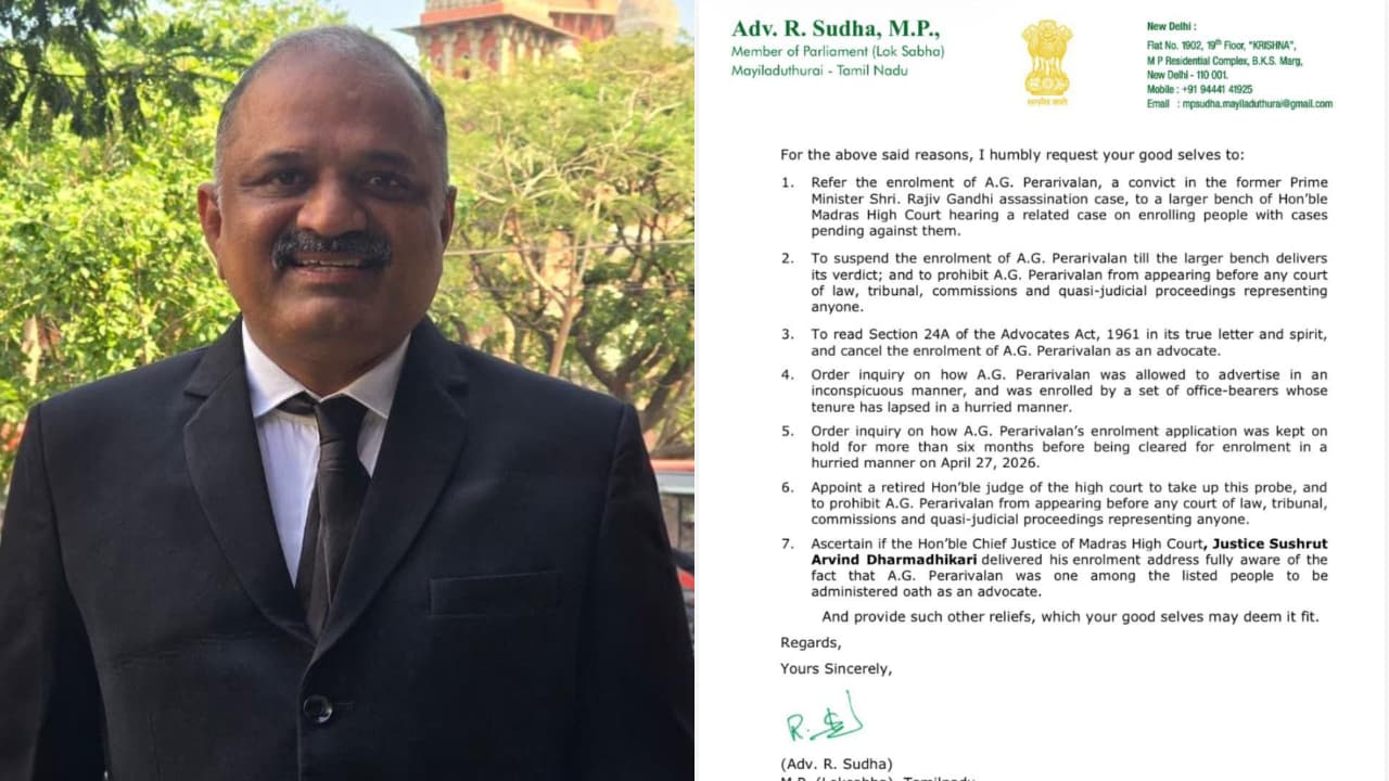 രാജീവ് ഗാന്ധി വധക്കേസിൽ ജയിൽമോചിതനായ പേരറിവാളൻ അഭിഭാഷകനായി എൻറോൾ ചെയ്തു. ഭീകരപ്രവർത്തനത്തിൽ ശിക്ഷിക്കപ്പെട്ടയാളെ കോടതിയിൽ ഹാജരാകാൻ അനുവദിക്കരുതെന്നും ബാർ കൗൺസിലിൽ നിന്ന് നീക്കണമെന്നും ആവശ്യപ്പെട്ട് കോൺഗ്രസ് എംപി രാഷ്ട്രപതിക്ക് കത്ത് നൽകി.