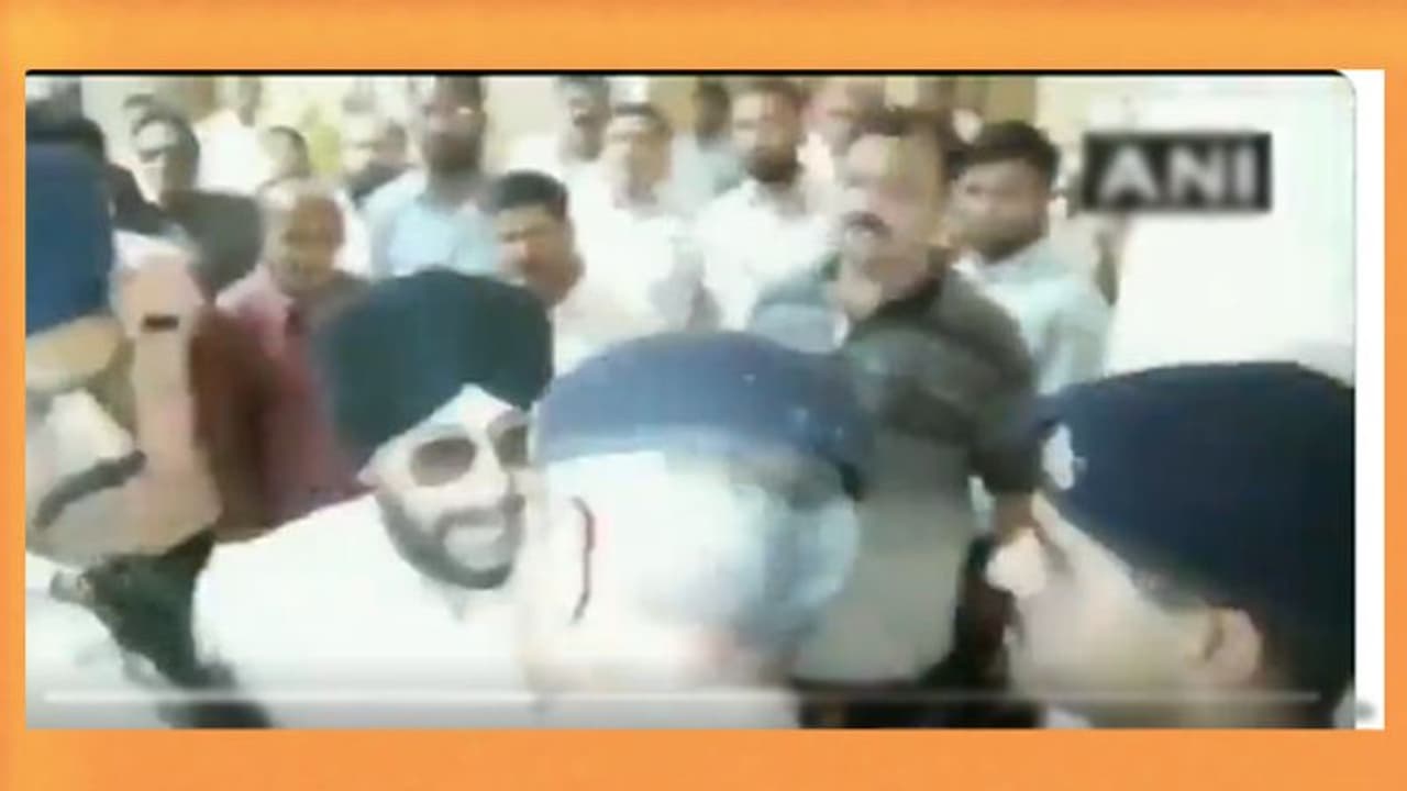 മധ്യപ്രദേശിലെ ഇൻഡോറിലാണ് സംഭവം. സണ്ണി രാജ്പാൽ ഡ്യൂട്ടിയിലുണ്ടായിരുന്ന പൊലീസ് ഉദ്യോഗസ്ഥനോട് അപമര്യാദയായി പെരുമാറുന്നതിന്റേയും ഉദ്യോഗസ്ഥനെ ബലംപ്രയോഗിച്ച് തള്ളുകയും ചെയ്യുന്നതിന്റേയും ദൃശ്യങ്ങൾ പത്രസമ്മേളനം റിപ്പോർട്ട് ചെയ്യാനെത്തിയ മാധ്യമപ്രവർത്തകരുടെ ക്യാമറയിൽ പതിഞ്ഞിട്ടുണ്ട്.