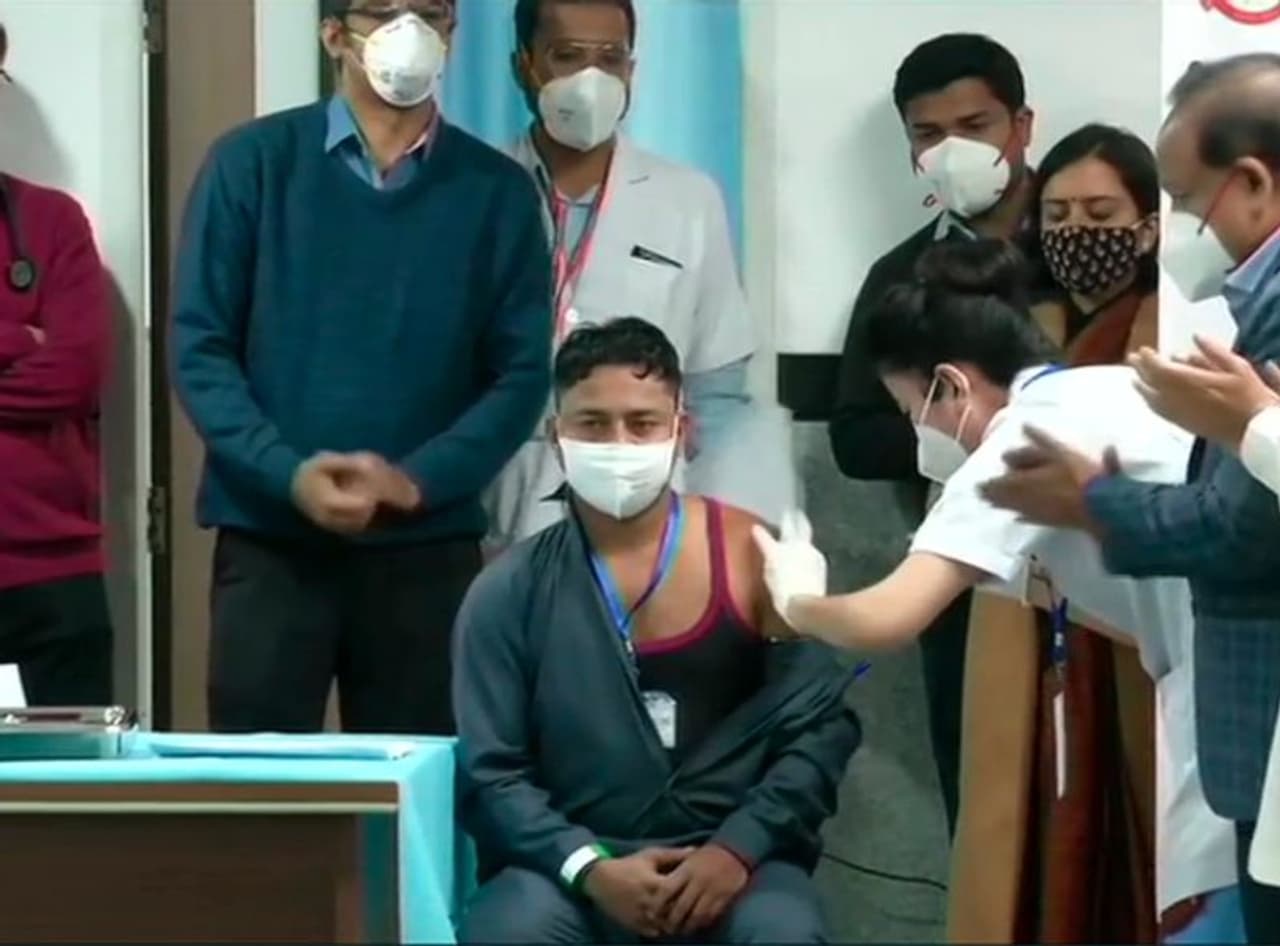 ദില്ലിയിലെ ശുചീകരണ തൊഴിലാളികളിൽ ഒരാളാണ് രാജ്യത്താദ്യം കൊവിഡ് പ്രതിരോധ വാക്സിൻ സ്വീകരിച്ചത്. എയിംസിലാണ് വാക്സിനേഷൻ നടന്നത്. കേന്ദ്ര ആരോഗ്യമന്ത്രി ഹർഷവർധനും അവിടെ സന്നിഹിതനായിരുന്നു.