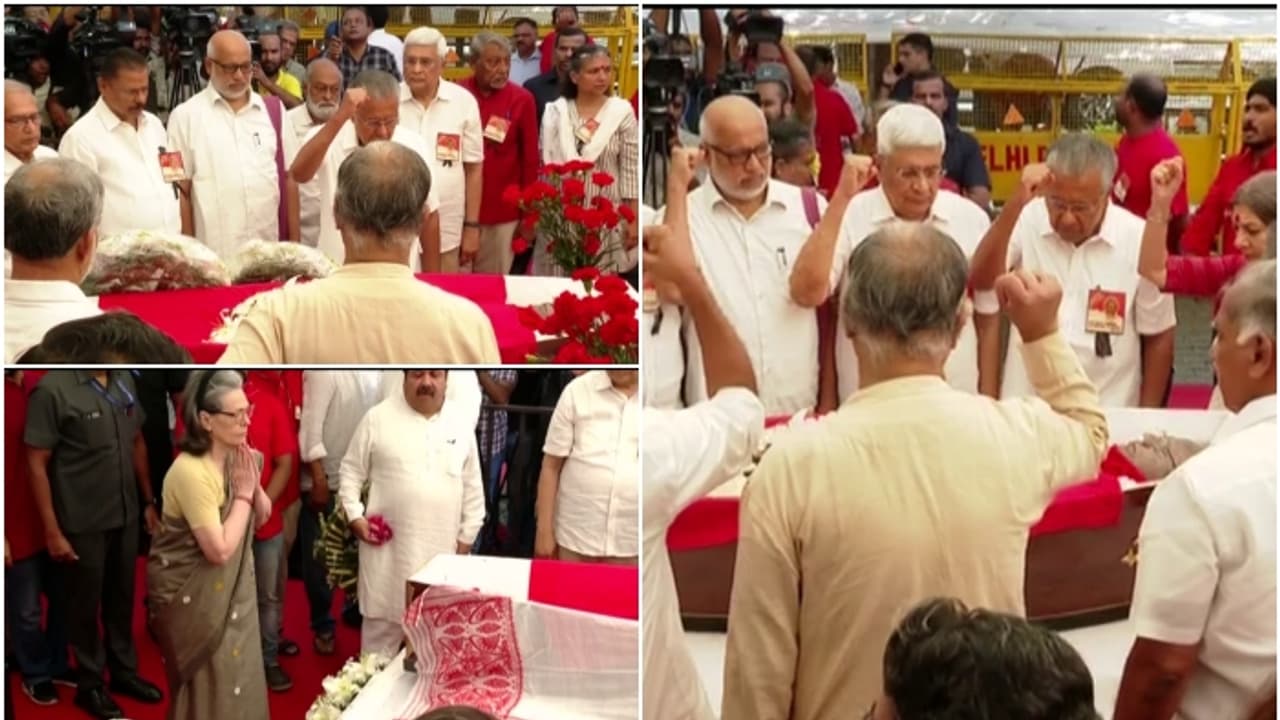 മുഖ്യമന്ത്രി പിണറായി വിജയൻ ഉൾപ്പെടെയുള്ള പിബി അംഗങ്ങളും കേന്ദ്ര കമ്മിറ്റി അംഗങ്ങളും ചേർന്ന് മൃതദേഹം ഏറ്റുവാങ്ങി. കോൺഗ്രസ് നേതാവ് സോണിയാ ഗാന്ധി അടക്കമുള്ള ദേശീയ നേതാക്കള് യെച്ചൂരിക്ക് ആദരാഞ്ജലി അർപ്പിച്ചു.