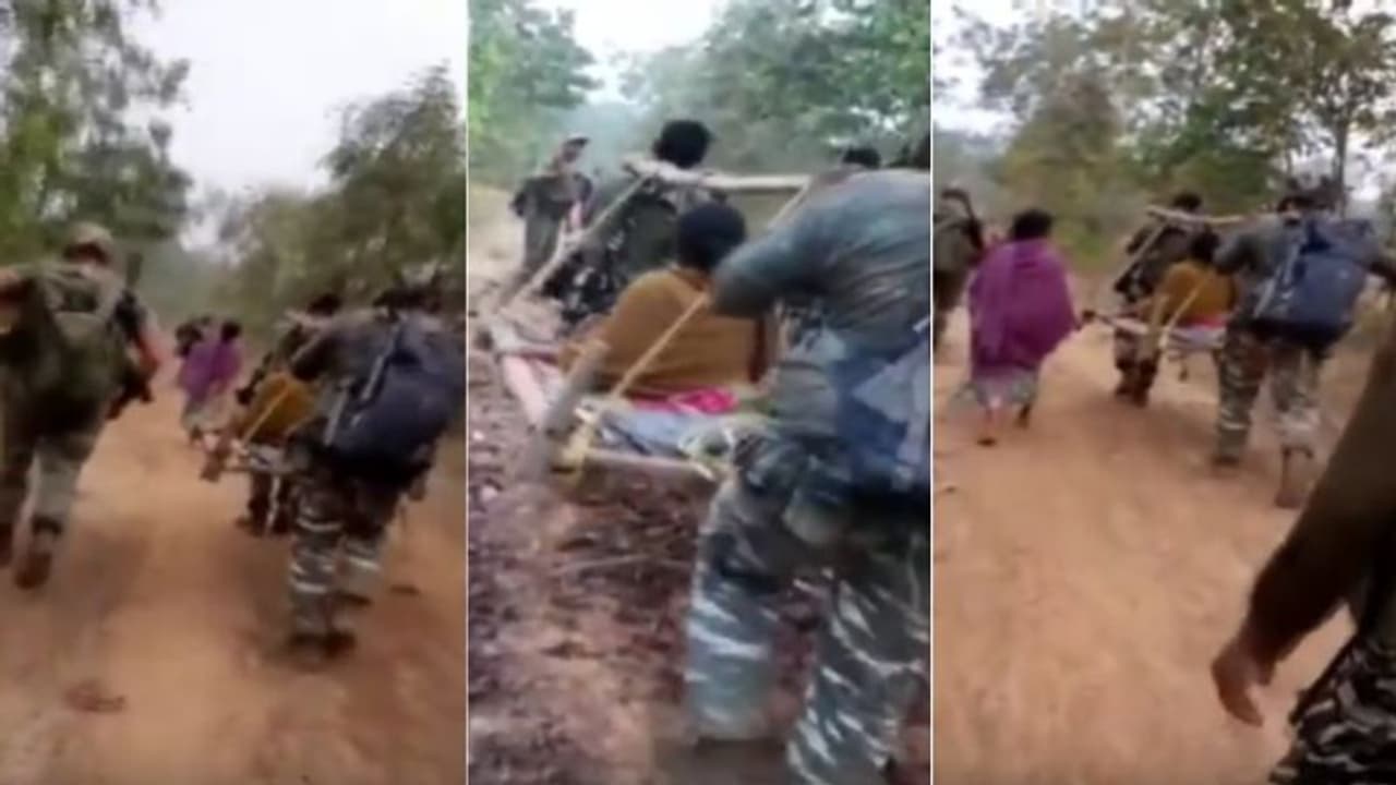 ആരോഗ്യസ്ഥിതി മോശമായതിനെ തുടർന്ന് ഗര്ഭിണിയായ യുവതിയെ സിആര്പിഎഫ് ജവാന്മാര് ആറ് കിലോ മീറ്ററോളം ചുമന്ന് ആശുപത്രിയിൽ എത്തിക്കുകയായിരുന്നു.