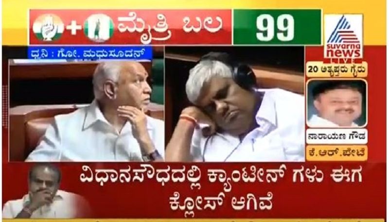 ചിലരൊക്കെ കേട്ടു കൊണ്ടിരുന്നു. ചിലർ കോട്ടുവായിട്ടു. മുഖ്യമന്ത്രി എച്ച് ഡി കുമാരസ്വാമിയുടെ സഹോദരൻ എച്ച് ഡി രേവണ്ണയാകട്ടെ മുകളിൽ കണ്ട ചിത്രത്തിൽ കാണുന്നത് പോലെ കിടന്നുറങ്ങി.