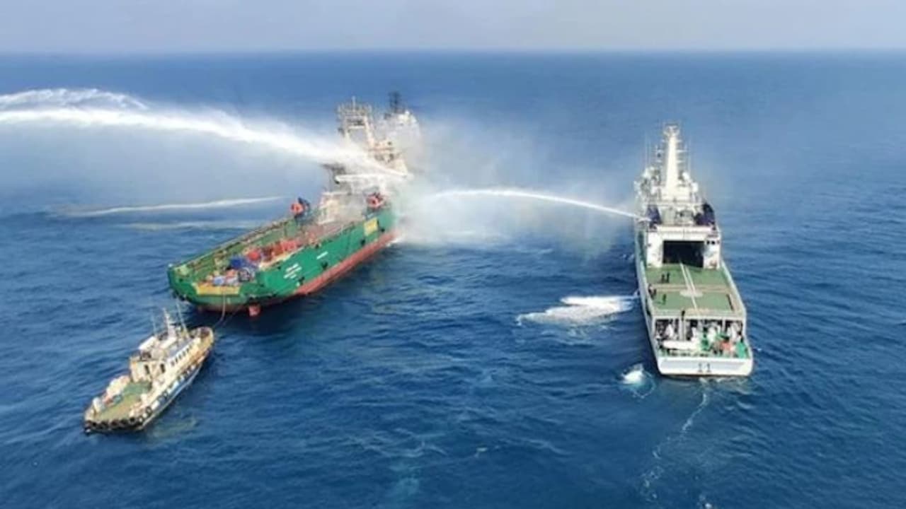 കോസ്റ്റ് ഗാർഡിന്റെ കപ്പലുകളും ഹെലിപോപ്റ്ററുകളുമാണ് തീയണയ്ക്കാൻ നിയോഗിച്ചത്. കപ്പലിന്റെ എഞ്ചിൻ റൂമിൽ നിന്നാണ് തീപിടിച്ചതെന്നാണ് പ്രാഥമിക നിഗമനം