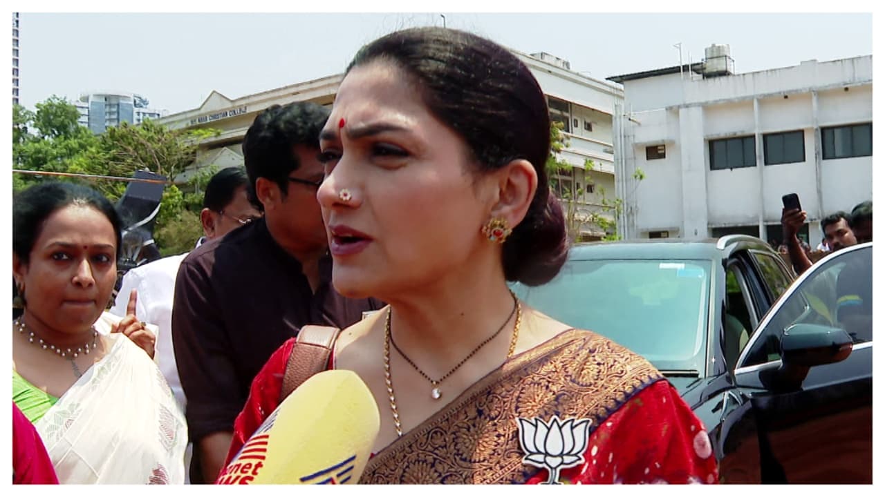 കോഴിക്കോട് നോർത്തിൽ എൻഡിഎ സ്ഥാനാർത്ഥി നവ്യ ഹരിദാസിന്റെ പ്രചാരണത്തിനായി എത്തിയതായിരുന്നു ഖുശ്ബു.
