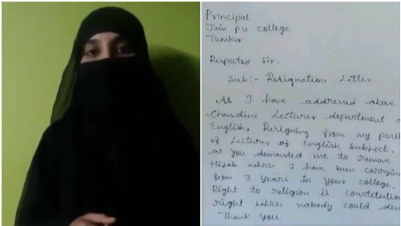 തന്റെ ആത്മാഹഭിമാനത്തെ ഹനിക്കുന്നതാണ് ഇത്, അതിനാൽ താൻ രാജിവയ്ക്കുന്നുവെന്നും ഹിജാബില്ലതെ താൻ കോളേജിൽ ജോലി ചെയ്യില്ലെന്നും ചാന്ദിനി പറഞ്ഞു. ചാന്ദിനി സ്വന്തം കൈപ്പടയിലെഴുതിയ രാജിക്കത്തും അവർ പുറത്തുവിട്ടു. അതേസമയം അധ്യാപികയോട് ഹിജാബ് ഉപേക്ഷിക്കാൻ ആവശ്യപ്പെട്ടിട്ടില്ലെന്ന് കോളേജ് പ്രിൻസിപ്പൽ കെ ടി മഞ്ജുനാഥ് പ്രതികരിച്ചു. കർണാടകയിലെ ഉടുപ്പിയിലാണ് ഹിജാബിന്റെ പേരിലുള്ള തർക്കം ആരംഭിച്ചത്. പിന്നീട് ഇത് സംസ്ഥാനത്തിന്റെ വിവിധ ഭാഗങ്ങളിലേക്ക് വ്യാപിച്ചു.