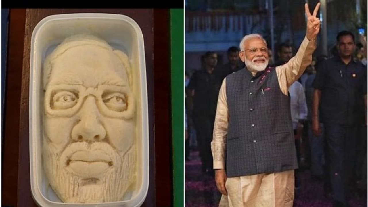 സൂറത്ത്: ലോക്സഭാ തെരഞ്ഞെടുപ്പിൽ മിന്നുന്ന പ്രകടനം കാഴ്ച വച്ച് നരേന്ദ്രമോദി വീണ്ടും അധികാരത്തിലേറുന്നതിന്റെ ആഘോഷ പ്രകടനങ്ങൾ രാജ്യത്തിന്റെ വിവിധ ഭാഗങ്ങളിൽ നടക്കുകയാണ്. അവയിൽ നിന്നും ഏറെ വ്യത്യസ്ഥമായ രീതിയിൽ മോദിയുടെ വിജയം ആഘോഷിക്കുകയാണ് സൂറത്തിലെ ഒരു ഐസ്ക്രീം പാർലർ. മോദിയുടെ മുഖം ആലേഖനം ചെയ്തിട്ടുള്ള കുൽഫി നിർമ്മിച്ചാണ് ഇവർ വിജയം ആഘോഷമാക്കിയിരിക്കുന്നത്.