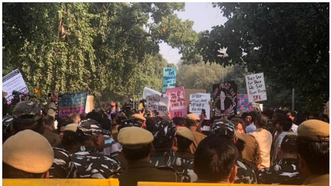 ദില്ലി: ഹോസ്റ്റൽ ഫീസ് വർധന പിൻവലിക്കുക, വൈസ് ചാൻസലറെ തൽസ്ഥാനത്ത് നിന്ന് നീക്കുക എന്നീ ആവശ്യങ്ങള് ഉന്നയിച്ച് ജെഎൻയു വിദ്യാർത്ഥികൾ മാനവവിഭവശേഷി മന്ത്രാലയത്തിലേക്ക് മാർച്ച് നടത്തി. ഉന്നത അധികാര സമിതിയുടെ ശുപാർശകൾ പ്രസിദ്ധപ്പെടുത്താൻ മന്ത്രാലയം തയ്യാറാകണമെന്ന് ആവശ്യപ്പെട്ട് മന്ത്രാലയത്തിന് വിദ്യാർത്ഥികൾ നിവേദനം നൽകി. സർവ്വകലാശാലയുടെ ആഭ്യന്തര സമിതിയുടെ തള്ളണമെന്നും വിദ്യാർത്ഥികൾ ആവശ്യപ്പെട്ടു. ഫീസ് വർധനവ് പൂർണ്ണമായും പിൻവലിക്കുന്നവരെ സമരം തുടരുമെന്ന് വിദ്യാർത്ഥികൾ വ്യക്തമാക്കി.