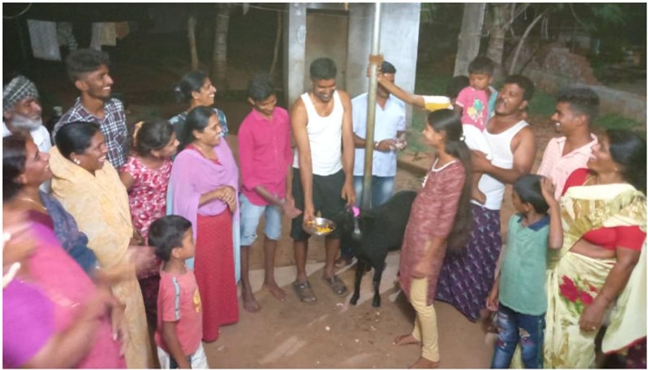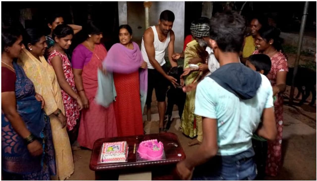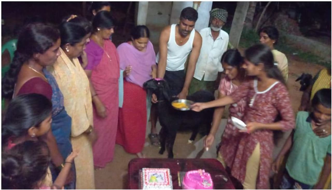 കറുമ്പിയുടെ ഒന്നാം ജന്മദിനത്തിന്റെ ആഘോഷത്തിലാണ് കര്ണാടക ചിത്രദുര്ഗയിലെ ഗൊല്ലരഹട്ടി ഗ്രാമം. കേക്ക് മുറിച്ച്, സദ്യ വിളമ്പി, പടക്കം പൊട്ടിച്ചാണ് കറുമ്പി എന്ന ഈ ആടിന്റെ ജന്മദിനം ഗ്രാമം ആഘോഷിച്ചത്.