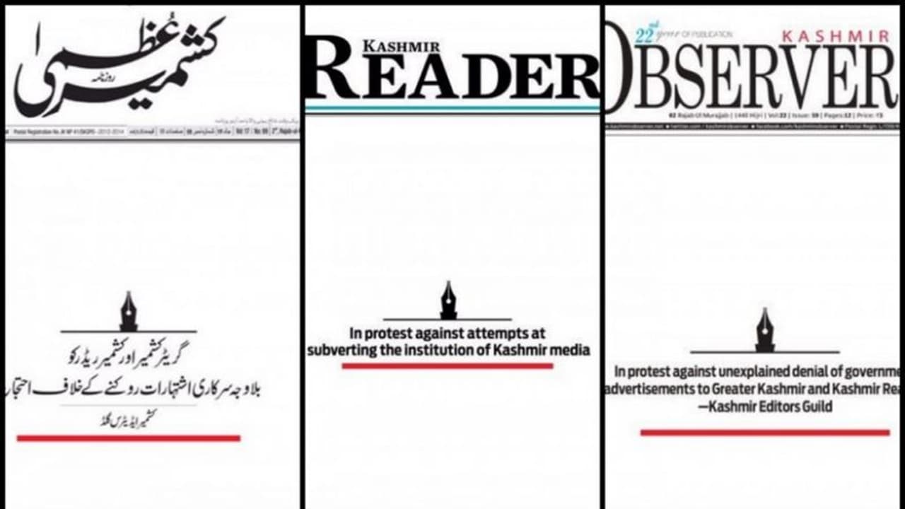 കൃത്യമായ കാരണങ്ങള് അറിയിക്കാതെ ഗ്രേറ്റര് കാശ്മീര്, കശ്മീര് റീഡര് എന്നീ പത്രങ്ങള്ക്ക് പരസ്യം നല്കുന്നത് നിര്ത്തിയതിനലാണ് ശൂന്യമായ പേജുകള് പ്രസിദ്ധീകരിച്ചതെന്ന് പത്രങ്ങള് വിശദീകരിക്കുന്നു. പരസ്യം നല്കുന്നത് നിര്ത്തലാക്കാനുള്ള തീരുമാനത്തിന്റെ കാരണം വ്യക്തമാക്കണമെന്ന ആവശ്യവുമായി ശൂന്യമായ ആദ്യ പേജുകള് ഉയര്ത്തിപ്പിടിച്ച് പത്രാധിപന്മാര് പ്രതിഷേധിച്ചു.