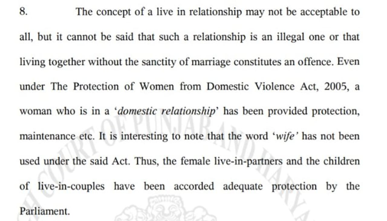പ്രായപൂർത്തിയായ സ്ത്രീയും പുരുഷനും ലിവിംഗ് ടുഗെദറിലാണെന്നും സ്ത്രീയുടെ കുടുംബത്തിൽ നിന്ന് ഭീഷണിയുണ്ടെന്നും ഇതിനാൽ ഒരുമിച്ച് ജീവിക്കാൻ സുരക്ഷ വേണമെന്നും ആവശ്യപ്പെട്ട് കോടതിയെ സമീപിച്ചിരുന്നു. 22 വയസ്സുകാരിയായ സ്ത്രീയും 19 വയസ്സുകാരനുമാണ് കോടതിയെ സമീപിച്ചത്. പുരുഷന് വിവാഹ പ്രായമാകുന്ന 21 വയസ്സുവരെ ഇവർക്ക് ഒരുമിച്ച് ജീവിക്കണമെന്നതായിരുന്നു ഇവരുടെ ആവശ്യം.