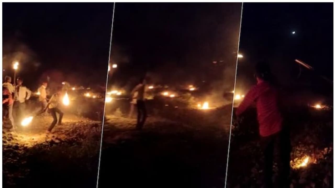 ഓട് കൊറോണേ ഓട് എന്ന് ആക്രോശിച്ചു കൊണ്ട് പന്തങ്ങൾ വായുവിൽ ചുഴറ്റുന്നതായും ഗ്രാമത്തിന് പുറത്തേക്ക് എറിയുന്നതും വീഡിയോ ദൃശ്യങ്ങളിൽ കാണാം.