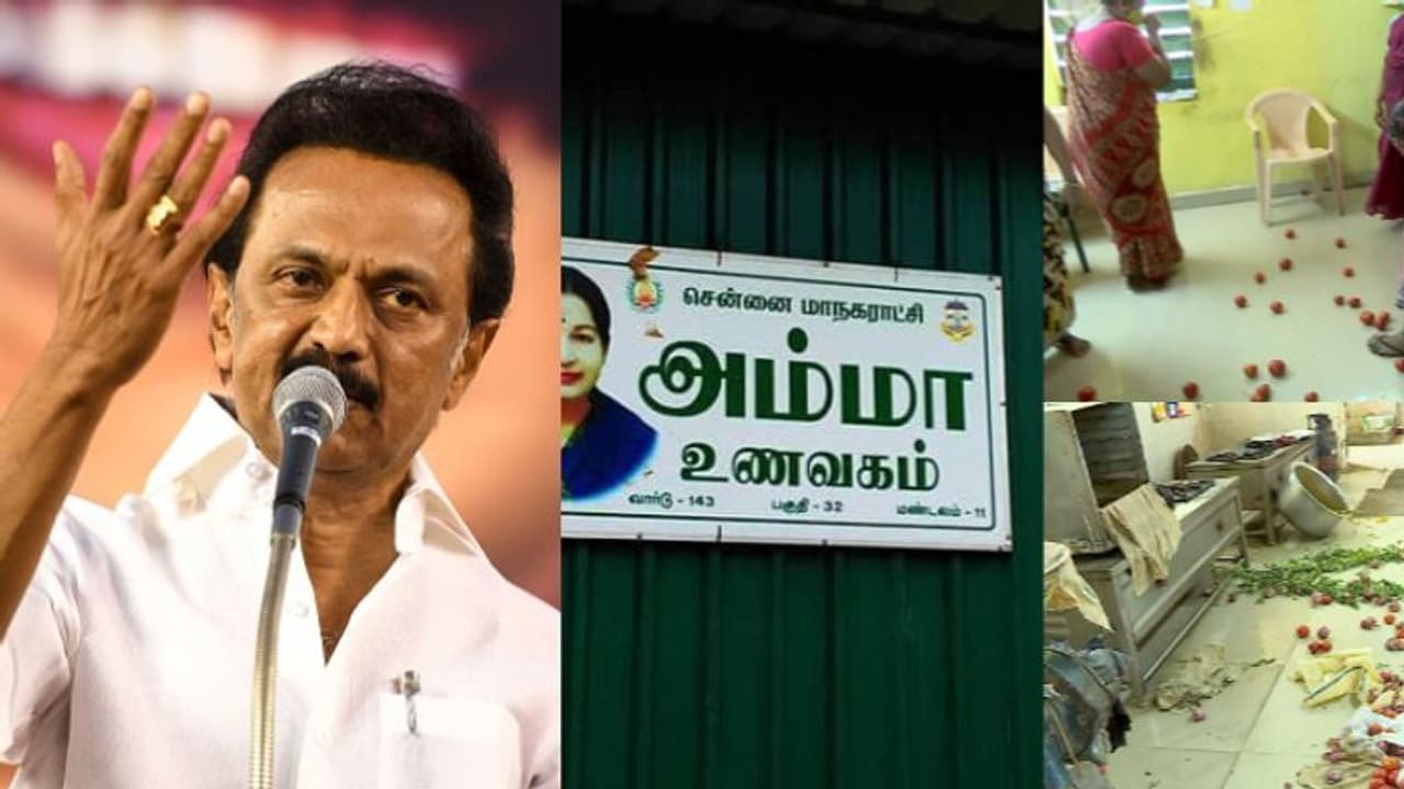 അടുക്കള കൈയ്യേറി ഭക്ഷണസാധനങ്ങളും പാത്രങ്ങളും തല്ലിതകർത്തു. അടുക്കളയിൽ കയറി പച്ചക്കറിയും പാത്രങ്ങളും ഗ്യാസും ഉൾപ്പടെയാണ് നശിപ്പിച്ചത്. ജയലളിതയുടെ ചിത്രം മാറ്റി സ്റ്റാലിന്റെ ചിത്രം പതിച്ചു. ഭക്ഷണം കുറഞ്ഞ നിരക്കിലും ലോക്ഡൗണ് കാലത്ത് സൗജന്യമായും ജനങ്ങള്ക്ക് നല്കിയരുന്ന എഐഎഡിഎംകെ സര്ക്കാര് സ്ഥാപനമാണ് അമ്മ ക്യാന്റീനുകള്. 2013 ഫെബ്രുവരിയിലാണ് അമ്മ ക്യാന്റീനുകള് തമിഴ്നാട്ടില് ആരംഭിക്കുന്നത്.