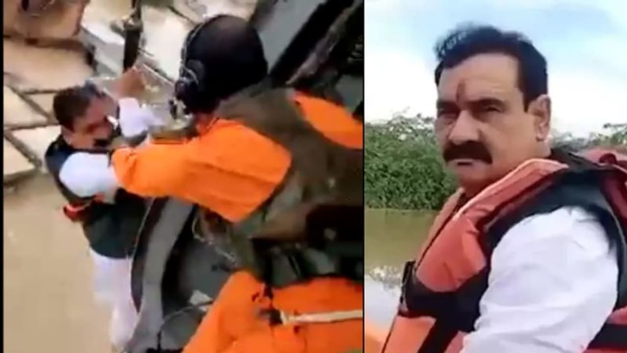 മധ്യപ്രദേശിൽ പ്രളയ സർവേയ്ക്കും കുടുങ്ങിപ്പോയവരെ രക്ഷിക്കാനും പോയ മന്ത്രി കുടുങ്ങി. പ്രളയബാധിത പ്രദേശത്ത് കുടുങ്ങിയ മന്ത്രിയെ ഹെലികോപ്ടർ ഉപയോഗിച്ചാണ് രക്ഷപ്പെടുത്തിയത്.