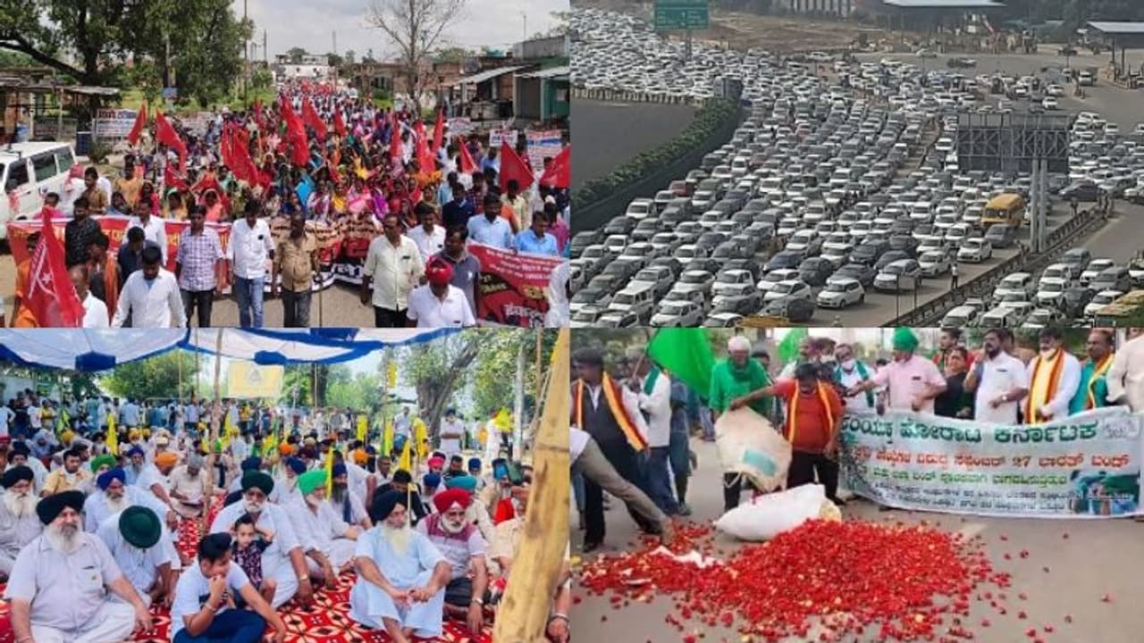 കർണാടകയിൽ ശക്തമായ പ്രതിഷേധമാണ് ഭാരത് ബന്ദിലുണ്ടായത്. ബെംഗളൂരു നഗരത്തിലടക്കം കർഷകസംഘടനകളുടെ പ്രതിഷേധമുണ്ടായി. മജസ്റ്റിക്കിൽ റോഡ് ഉപരോധിച്ച കർഷകരെ അറസ്റ്റ് ചെയ്ത് മാറ്റി.ബെല്ലാരിയിലും ഹസ്സനിലുമടക്കം ഗ്രാമീണ മേഖലകളിലും പ്രതിഷേധം ശക്തമായിരുന്നു. പലയിടത്തും കർഷകസംഘടനകളുടെ പ്രവർത്തകർ വാഹനങ്ങൾ തടഞ്ഞ് പ്രതിഷേധിച്ചു. ബെല്ലാരിയിൽ തുറന്ന കടകൾ അടപ്പിച്ചു. ചിക്കമംഗളൂരിൽ പൂക്കൾ റോഡിൽ വിതറിയും കഴുതകളെ ഇറക്കിയും കർഷകരുടെ പ്രതിഷേധമുണ്ടായി. പ്രധാനമന്ത്രി നരേന്ദ്രമോദിക്കെതിരായ മുദ്രാവാക്യങ്ങളോടെയായിരുന്നു കർഷകരുടെ പ്രതിഷേധം.