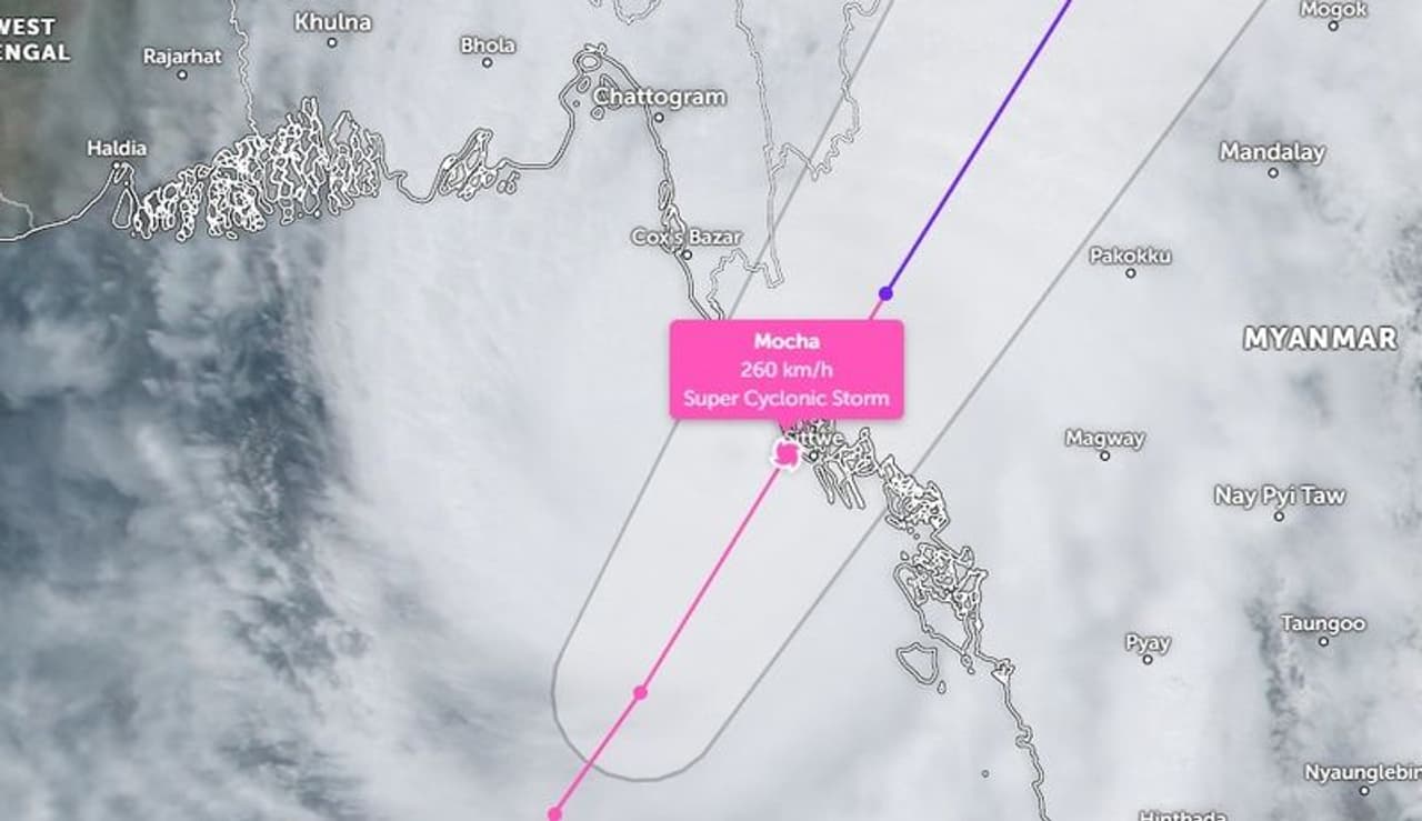 തിരുവനന്തപുരം: ബംഗാൾ ഉൾക്കടലിൽ രൂപം കൊണ്ട മോഖ ചുഴലിക്കാറ്റ് കരതൊട്ടു. ബംഗ്ലാദേശിലും മ്യാന്മറിലും കനത്ത മഴയാണ് ചുഴലിക്കാറ്റ് മൂലം ഉണ്ടാകുന്നത്. മണിക്കൂറിൽ 265 കിലോമീറ്റർ വേഗതയിലാണ് കാറ്റ് വീശുന്നത്. മ്യാന്മറിലും ബംഗ്ലാദേശിലും ലക്ഷക്കണക്കിനാളുകളെ താമസ സ്ഥലങ്ങളിൽ നിന്ന് ഒഴിപ്പിച്ചു. ചുഴലിക്കാറ്റിന്റെ സഞ്ചാര പാതയിൽ കരയിൽ കനത്ത നാശനഷ്ടമുണ്ടാകുമെന്നാണ് കരുതപ്പെടുന്നത്. കേരളത്തിൽ ഒറ്റപ്പെട്ടയിടങ്ങളിൽ മഴയ്ക്ക് സാധ്യതയുണ്ട്.
