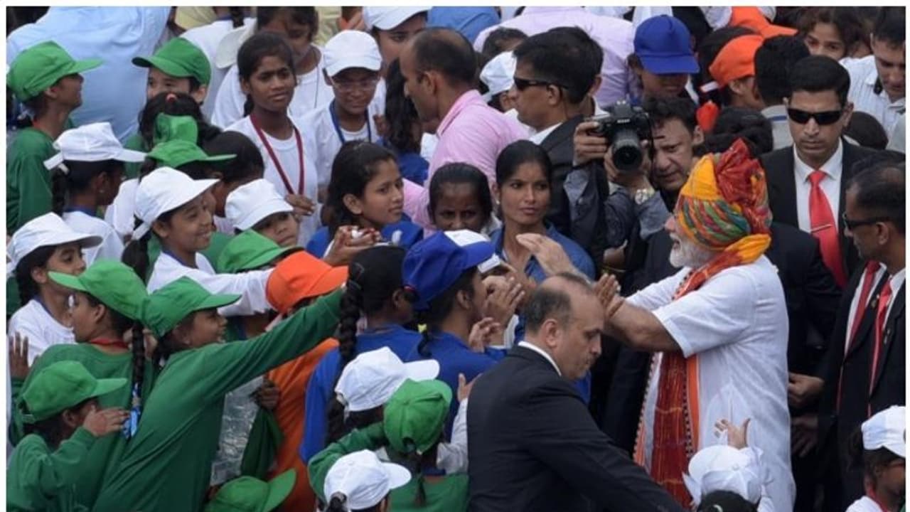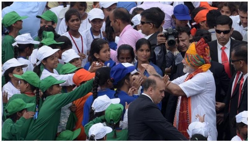 സുരക്ഷാ ഉദ്യോഗസ്ഥരെയെല്ലാം മാറ്റി നിര്ത്തിയാണ് മോദി കുട്ടികള്ക്കരികിലേക്ക് ഇറങ്ങിച്ചെന്ന് അവര്ക്കൊപ്പം സന്തോഷം പങ്കുവെച്ചത്. കഴിഞ്ഞ വര്ഷവും സ്വാതന്ത്ര്യദിനത്തില് തന്റെ സുരക്ഷാ ഉദ്യോഗസ്ഥരെ മാറ്റിനിര്ത്തി മോദി കുട്ടികള്ക്കൊപ്പം സംവദിക്കാന് അവസരമുണ്ടാക്കിയിരുന്നു.