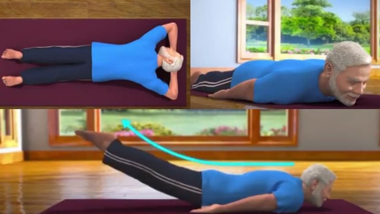 യോഗ മുറകളായ ത്രികോണാസനത്തിനും തടസനത്തിനും പിന്നാലെ ശലഭാസനത്തിന്റെ വീഡിയോയാണ് പുതുതായി മോദി പങ്കുവച്ചിരിക്കുന്നത്.