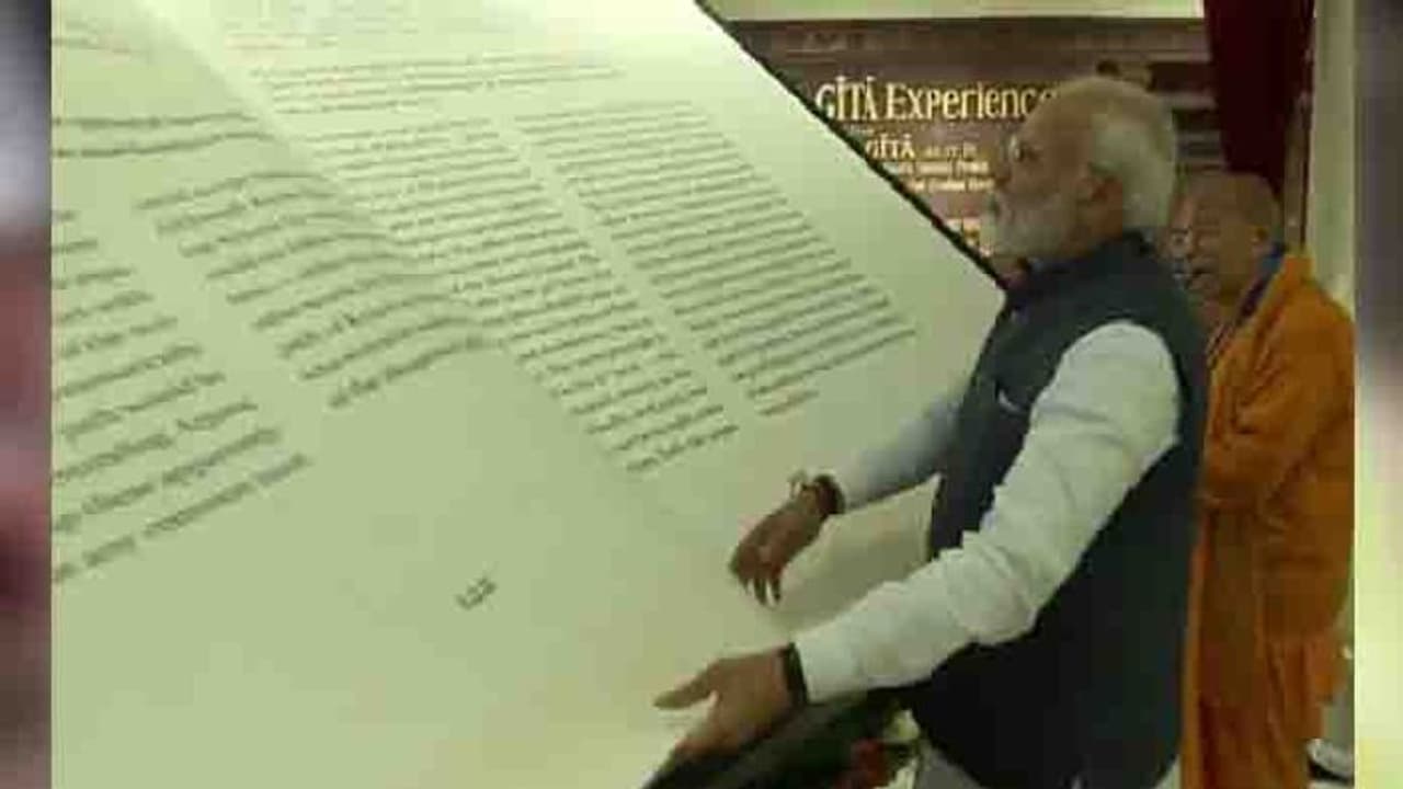 2.8 മീറ്റര് നീളവും രണ്ട് മീറ്റര് വീതിയും 670 പുറങ്ങളുമുള്ള ഭഗവത് ഗീതയില് 18 പെയിന്റിങ്ങുകളുമുണ്ട്.
