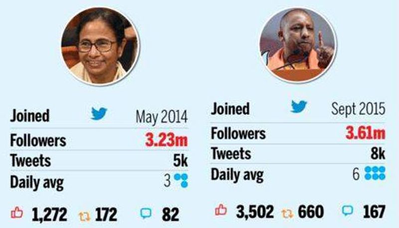 ഉത്തര്പ്രദേശ് മുഖ്യമന്ത്രി യോഗി ആദിത്യനാഥ് ഇവരിൽ നിന്നും ഏറെ പിന്നിലാണ്. 2015 സെപ്റ്റംബറിൽ ട്വിറ്റര് അക്കൗണ്ട് തുടങ്ങിയ യോഗിക്ക് 30 ലക്ഷം ഫോളോവേഴ്സ് മാത്രമാണുള്ളത്.