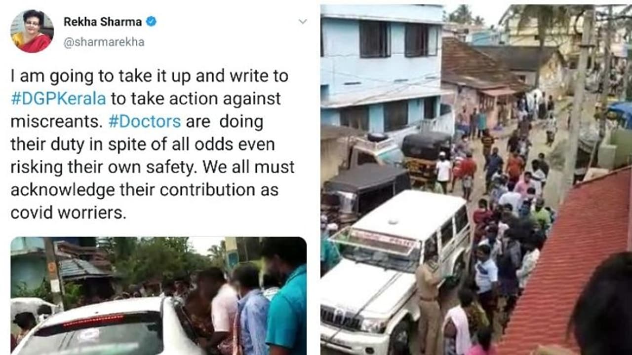 വനിതാ ഡോക്ടർ അടക്കം ആരോഗ്യ പ്രവർത്തകരെ ആക്രമിച്ചത് അപലപനീയമെന്ന് രേഖാ ശർമ ട്വിറ്ററിൽ കുറിച്ചു