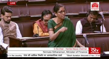രണ്ടാം യുപിഎം സര്ക്കാരിന്റെ കാലത്ത് ജി ഡി പി 6.4 ശതമാനം ആയിരുന്നു. ഒന്നാം മോദി സർക്കാരിന്റെ കാലത്ത് ഇത് 7.5 ശതമാനമായി. യഥാർത്ഥ്യം ഉൾക്കൊള്ളാൻ ഇപ്പോഴും പലർക്കും മടിയാണെന്നും വസ്തുതകളുടെ അടിസ്ഥാനത്തിലാണ് താൻ സംസാരിക്കുന്നതെന്നുമായിരുന്നു നിര്മ്മല സീതാരാമന് സഭയെ അറിയിച്ചത്.