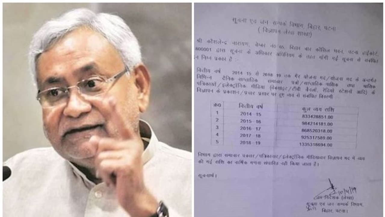 'ദി വയര്'ആണ് ഇത് സംബന്ധിച്ച വിവരങ്ങള് റിപ്പോര്ട്ട് ചെയ്തതത്. മുന് വര്ഷങ്ങളില് പരസ്യത്തിനായി ചിലവഴിച്ച തുകയേക്കാള് വലിയ വര്ധനയാണ് കഴിഞ്ഞ 5 വര്ഷത്തിനുള്ളില് ഉണ്ടായത്. 2008-09 വര്ഷങ്ങളിലാണ് ബീഹാറില് സര്ക്കാര് ഇലക്ട്രോണിക് മാധ്യമങ്ങളില് പരസ്യം ചെയ്യാനായി ആരംഭിച്ചത്. ആ വര്ഷം 25.3 ലക്ഷമായിരുന്നു പരസ്യത്തിനായി ചിലവാക്കിയത്.