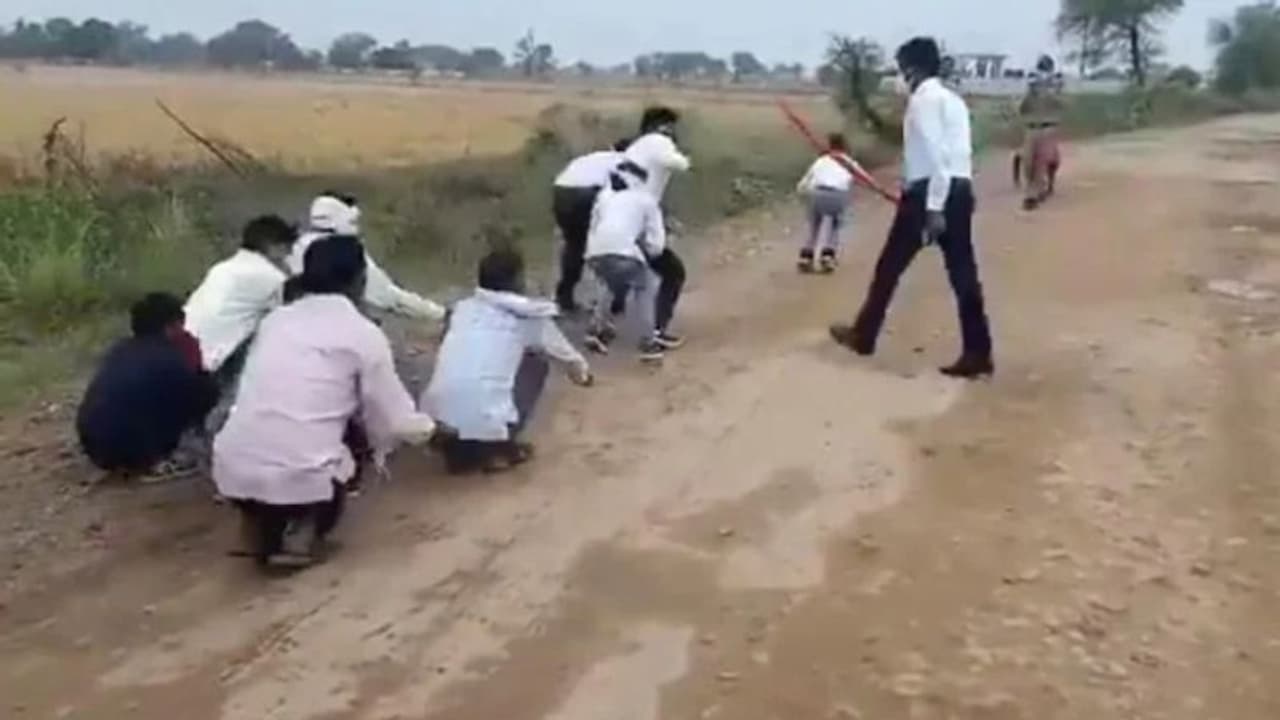 സംഘത്തെക്കൊണ്ട് തവളച്ചാട്ടം ചാടിക്കുകയായിരുന്നു പൊലീസ്. കൂട്ടത്തിൽ ചെറിയ കുട്ടികൾ മുതൽ പ്രായമായവർ വരെ ഉണ്ടായിരുന്നു. തവളച്ചാട്ടം ചാടുന്ന ആളുകളും ഇവർക്കൊപ്പം വടിയുമായി നിൽക്കുന്ന പൊലീസുമടങ്ങിയ വീഡിയോ സോഷ്യൽ മീഡിയയിൽ വൈറലാണ്.