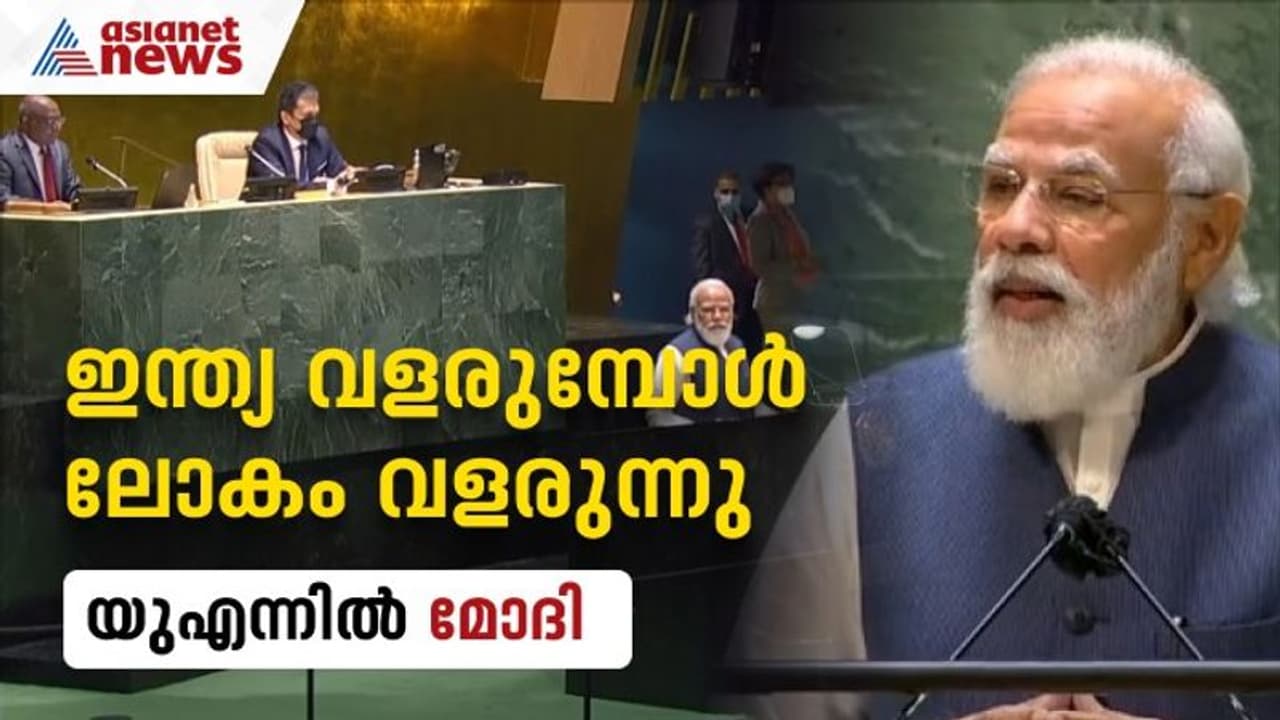 ചില രാജ്യങ്ങൾ ഭീകരവാദം രാഷ്ട്രീയ ആയുധമാക്കുന്നു. ഭീകരവാദം പ്രോത്സാഹിപ്പിക്കുന്നവർക്കും ഇത് ഭീഷണിയായി മാറും. അഫ്ഗാനിസ്ഥാൻ ഭീകരസംഘടനകളുടെ മണ്ണാക്കി മാറ്റാനാവില്ല. അഫ്ഗാനിസ്ഥാനിലെ സ്ഥിതി ചിലർ ഭീകരവാദം പടർത്താൻ മുതലെടുക്കുന്നു. അഫ്ഗാനിസ്ഥാനിലെ സ്ത്രീകളും കുട്ടികളും ഉൾപ്പടെയുള്ള ന്യൂനപക്ഷങ്ങൾക്ക് ലോകത്തിൻറെ സഹായം ആവശ്യമാണ്. ഭീകരവാദത്തിലൂടെ നിഴൽ യുദ്ധം തടയുന്നതിൽ യുഎന്നിന് വീഴ്ച പറ്റി. കൊവിഡിന്റെ ഉല്പത്തി കണ്ടെത്തുന്നതിലും യുഎൻ സംശയത്തിൻറെ നിഴലിലായി. യുഎൻ ശക്തിപ്പെടുത്തണമെന്നും മോദി പറഞ്ഞു.