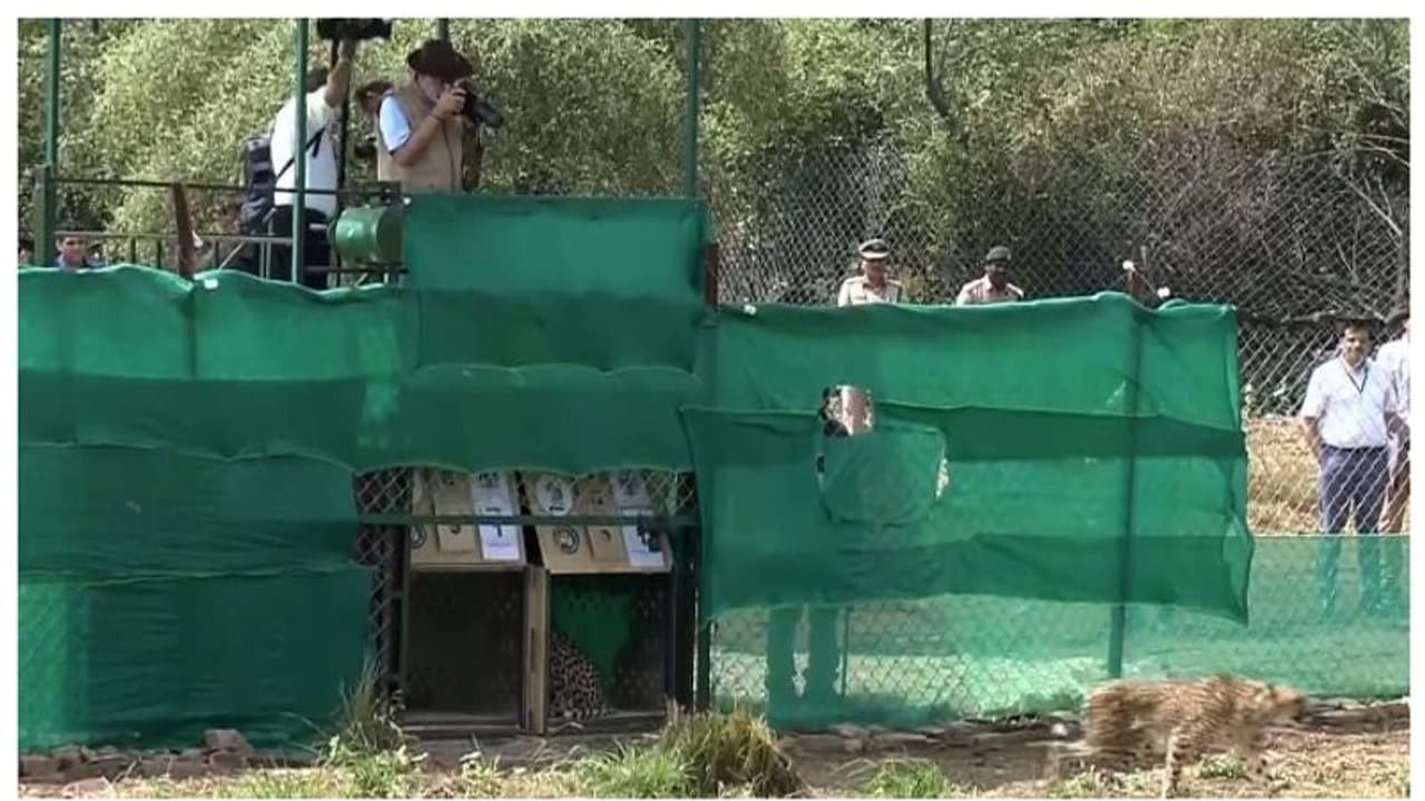 എട്ട് ചീറ്റപ്പുലികളെയാണ് മധ്യപ്രദേശിലെ കുനോ നാഷണല് പാര്ക്കില് പ്രധാനമന്ത്രി നരേന്ദ്രമോദി തുറന്നുവിട്ടത്. തുറന്നുവിട്ട ചീറ്റപ്പുലികളുടെ ചിത്രങ്ങള് ക്യാമറയില് പകര്ത്തുകയും ചെയ്തു. ഒരുമാസം പ്രത്യേകം സജ്ജമാക്കിയ പ്രദേശത്തെ ക്വാറന്റീന് ശേഷമാകും ചീറ്റകളെ കുനോ നാഷണല് പാർക്കിലേക്ക് സ്വൈര്യ വിഹാരത്തിന് വിടുക. അതിന് ശേഷം ഓരോ ചീറ്റയെയും നിരീക്ഷിക്കാൻ പ്രത്യേക സംഘത്തെ നിയോഗിച്ചിട്ടുണ്ട്.