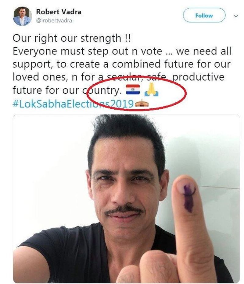 പരാഗ്വേയുടെ പതാകയില് ചുവപ്പും വെളുപ്പും നീലയും നിറങ്ങളാണെന്ന് റോബര്ട്ട് വാദ്ര തിരിച്ചറിഞ്ഞില്ല. ഉടനെ വിമര്ശനവും ട്രോളുമായി നിരവധി പേരെത്തി. പ്രിയങ്കാ ഗാന്ധിയുടെ ഭര്ത്താവിന് ഇന്ത്യന് ദേശീയ പതാകയുടെ നിറം പോലും അറിയില്ലേ എന്നാണ് സോഷ്യല് മീഡിയയുടെ ചോദ്യം. അബന്ധം മനസിലായ വാദ്ര പിന്നീട് ട്വീറ്റ് പിന്വലിച്ചു.