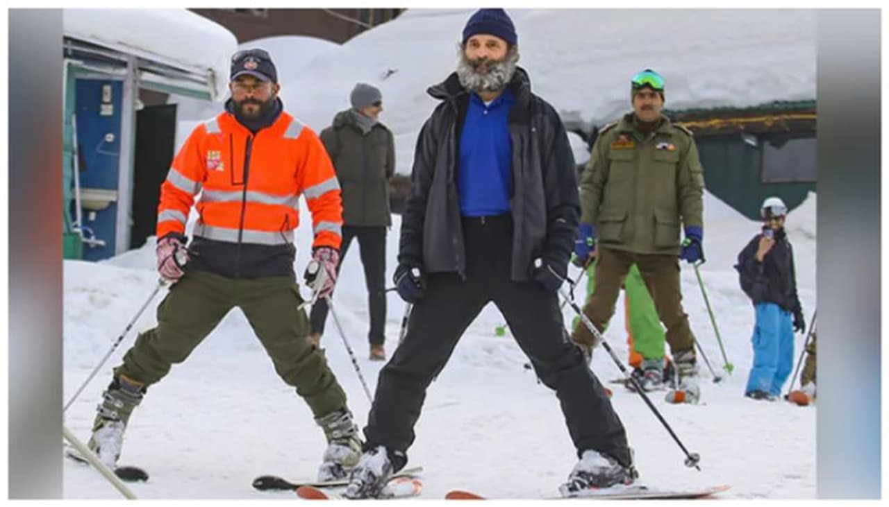 സുരക്ഷാ ഉദ്യോഗസ്ഥരുടെ വലയത്തിൽ നിന്ന് സ്കീയിംഗ് നടത്തുന്ന രാഹുൽ ഗാന്ധിയുടെ ചിത്രങ്ങൾ സോഷ്യൽ മീഡിയകളിൽ വൈറലാണ്.