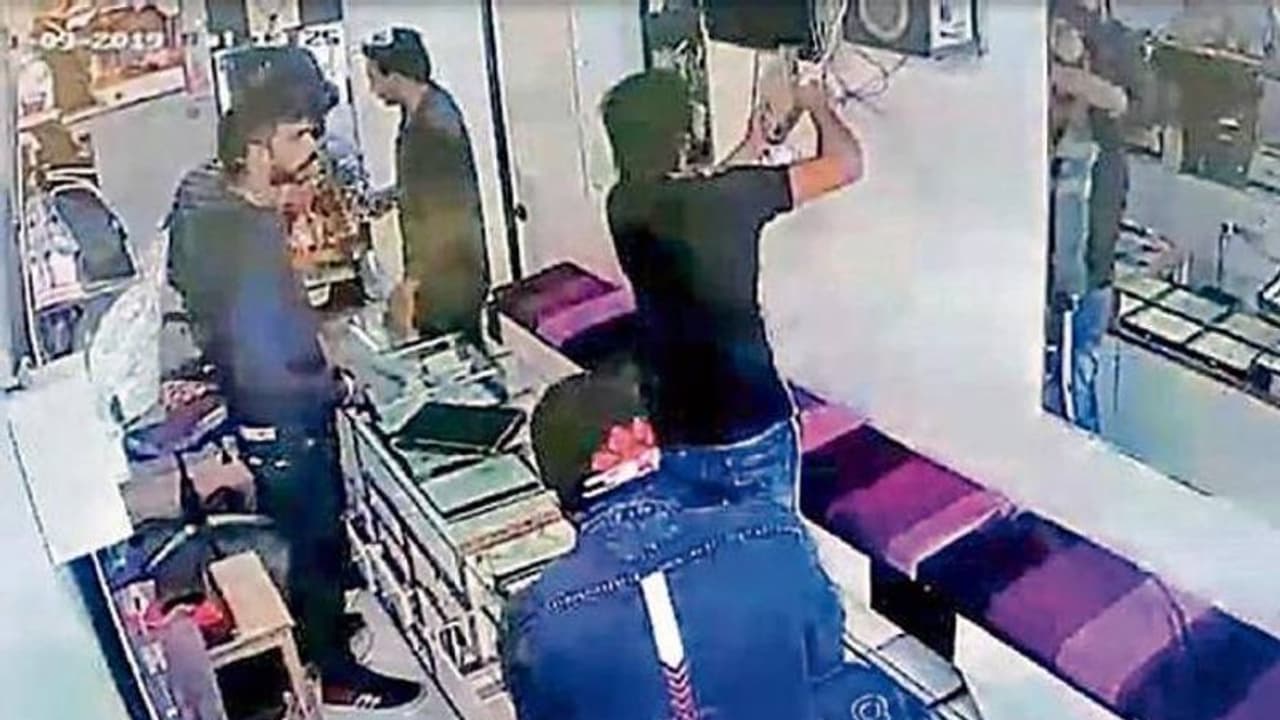 ശനിയാഴ്ച ഉച്ചയോടെ ഉപഭോക്താക്കളെന്ന വ്യാജേന രണ്ടുപേര് ജ്വല്ലറിയിൽ എത്തുകയായിരുന്നു. ആ സമയത്ത് ഉടമ ഗുല്ഷന് മാത്രമേ ജ്വല്ലറിയിലുണ്ടായിരുന്നുള്ളു. പിന്നീട് മറ്റു രണ്ടുപേര് കൂടിയെത്തുകയായിരുന്നു. മുഖം മറയ്ക്കാതെയാണ് പ്രതികൾ ജ്വല്ലറിയിലെത്തിയത്. കടയിൽ ആരുമില്ലെന്ന് മനസ്സിലാക്കിയ സംഘം കടയുടമയെ തോക്കിൻ മുനയിൽ നിർത്തി ജ്വല്ലറി കൊള്ളയടിക്കുകയായിരുന്നു. മോഷണം ചെറുക്കുന്നതിനിടെ ഗുല്ഷനെ സംഘം മര്ദിക്കുന്നതും സിസിടിവിയിൽ പതിഞ്ഞിട്ടുണ്ട്.