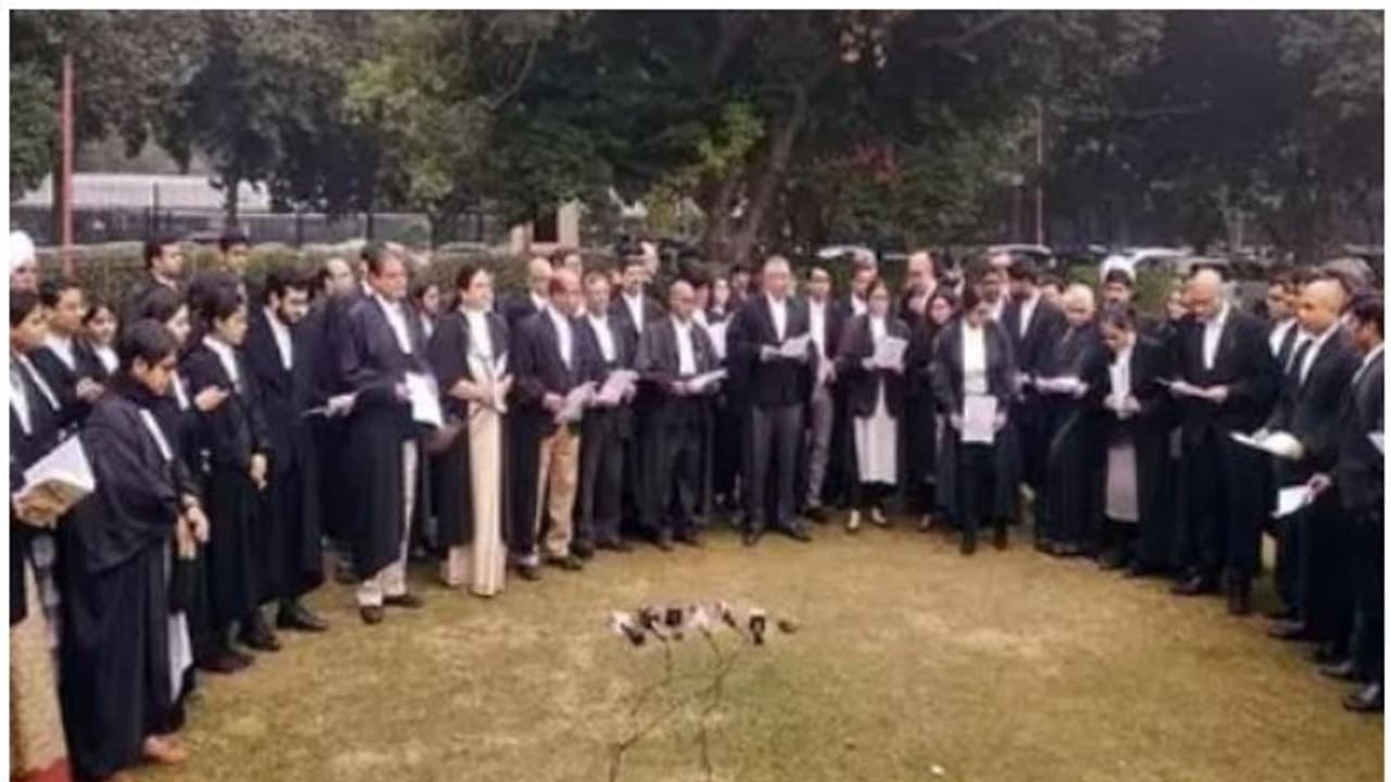 പൗരത്വ നിയമ ഭേദഗതിയെ പിന്തുണച്ച് സുപ്രീംകോടതിയുടെ വളപ്പില് വന്ദേമാതരം ആലപിച്ച് ഒരു സംഘം അഭിഭാഷകര്.